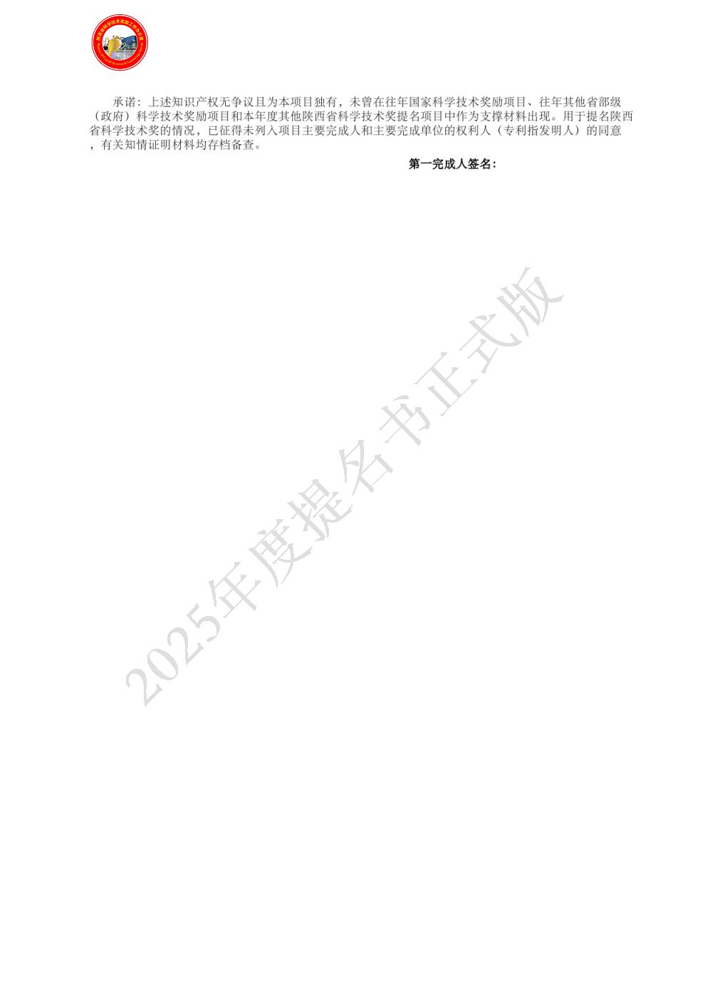 成果材料齐全、规范,无知识产权纠纷,人员排序无争议,符合陕西省科技科技进步奖提名条件。 |