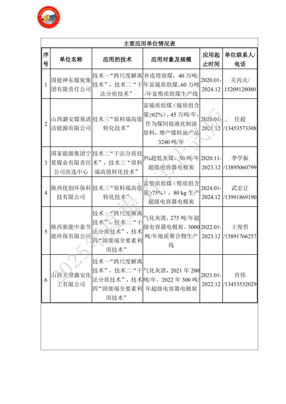 排名:6 行政职务:主管 技术职称:高级工程师 工作单位:国能神东煤炭集团有限责任公司 完成项目时所在单位:国能神东煤炭集团有限责任公司 对本项目技术创造性贡献:作为煤岩显微组分利用技术验证、推广负责人,统筹原料端转化技术推广方案的优化,制定“性能调试-原料适配-应用落地”的实施路线,助力技术产业化。对本项目的实质性贡献对应“四、主要技术发明”所列第三项技术发明,是1篇技术验证报告的核心作者。支持以上贡献成立的证明材料见附件2.2.12。