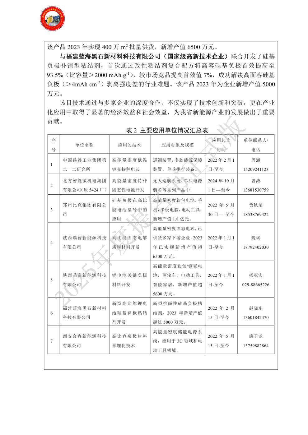 单位贡献:本项目的主要完成单位陕西瑞智新能源科技有限公司在本项目的应用推广方面作出了突出贡献。他们积极推动本项目的创新科技成果的转化和应用,通过广泛的技术培训和推广活动,将先进技术和创新成果在全省范围内进行普及,显著提升了相关行业的技术水平和竞争力。这些努力不仅促进了项目成果的广泛应用,还为陕西省的经济发展和技术进步提供了有力支持。
