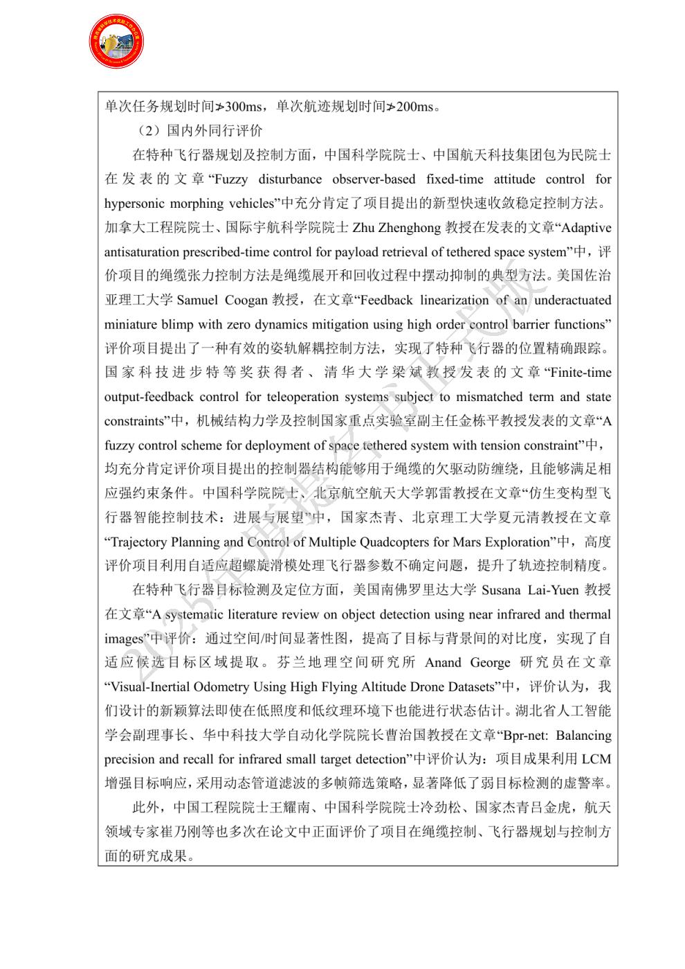 单位贡献: 西安交通大学针对带绳缆结构特种无人飞行器任务过程面临的“低空环境复杂、潜在目标多样”等因素,解决了强干扰下慢小弱目标“看不准”、“跟不住”的难题,与西北工业大学共同攻克了弱目标智能检测跟踪的关键技术,共同发表高水平学术论文2篇。