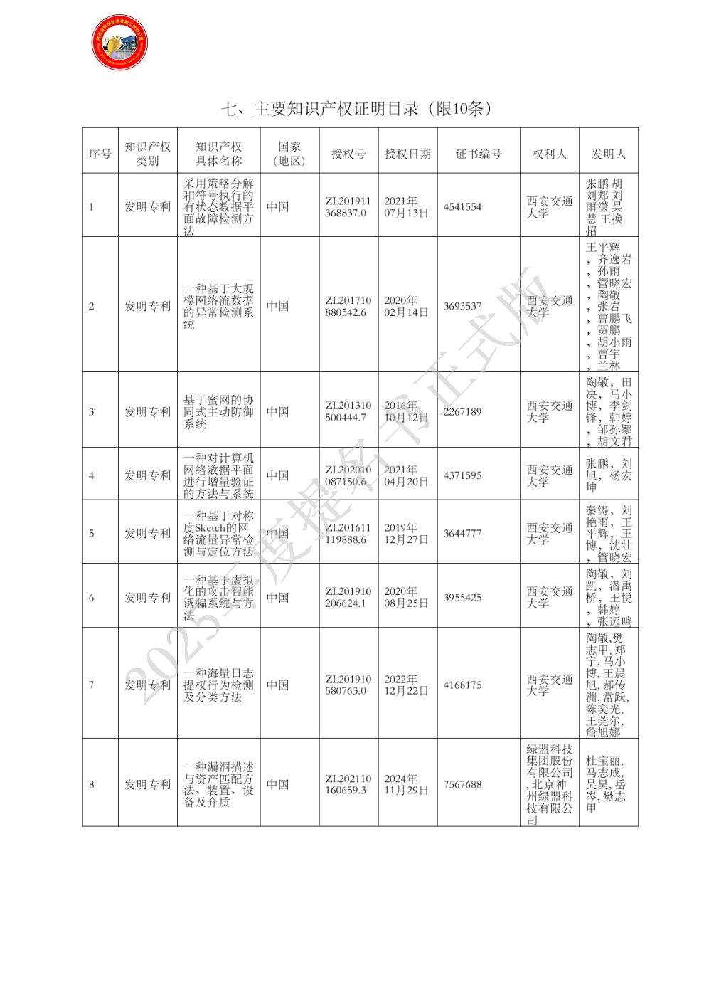 单位贡献:作为项目第一完成单位,西安交通大学主要负责整体技术方案的设计,同时负责项目的组织管理和合作协调工作,是主要知识产权目录第1至7项专利的权利人。重点负责了以下技术的研发:网络管理策略的自动化解译技术、网络管理策略的部署验证技术、基于多源网络大数据的攻击检测技术、高交互蜜罐网络威胁诱捕技术;此外,有效推动了项目成果应用于中国移动、中核武汉等通信、核电重要行业的头部企业,以及陕西省安全厅、宁波市大数据管理服务中心等政府单位。
