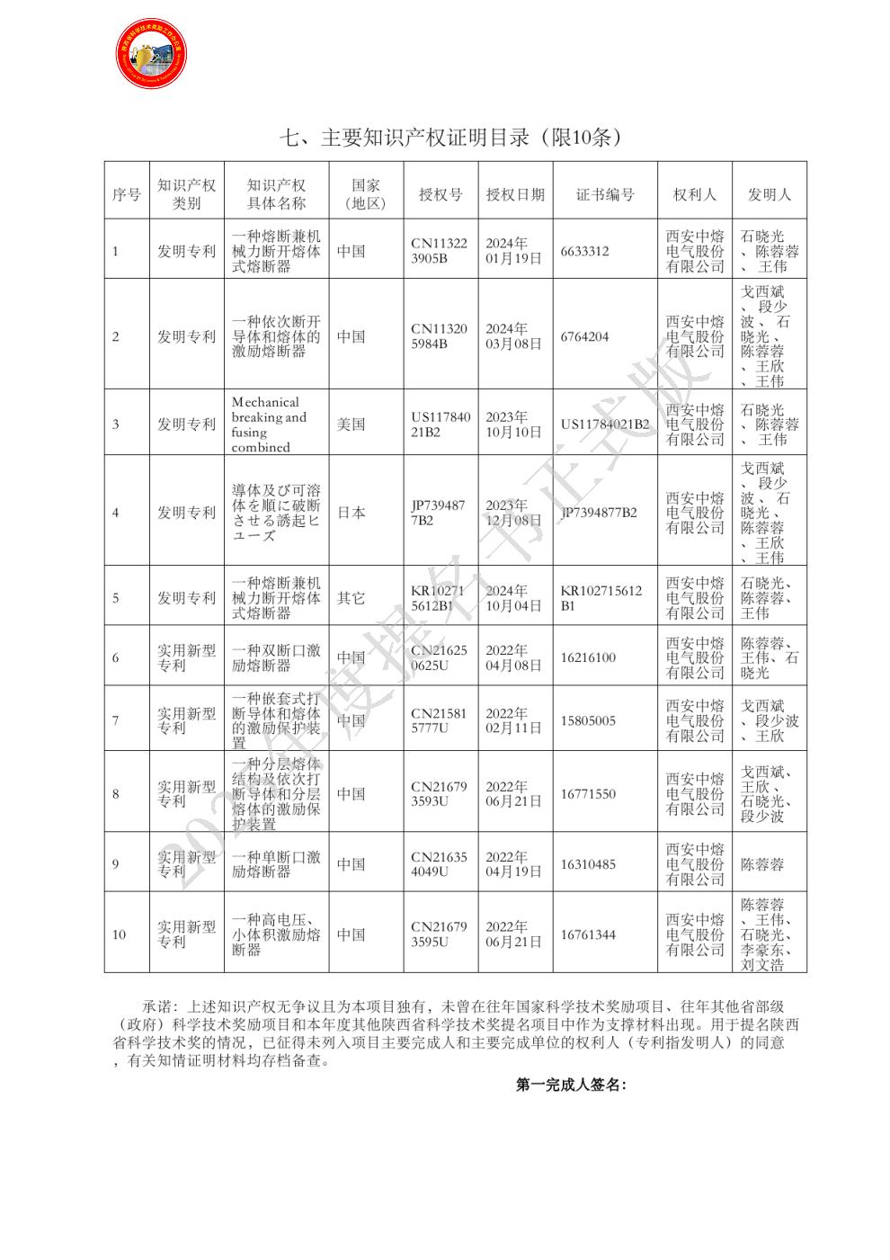 | 提名单位意见: | 该项目针对市场传统熔断器在高抗冲击电流,低功耗,低倍数小电流熔断时间长以及快速全范围切断故障电流及碰撞异常情况保护和需求方面的不足,研发出了全范围保护激励熔断器并联切断熔丝石英砂灭弧技术,通过主动发出激励信号断开被保护回路可以提供更加多样化的控制保护方案,填补国内市场空白。该项目提名书及附件材料全部真实、资料规范齐全、符合陕西省技术发明奖的提名要求。 |