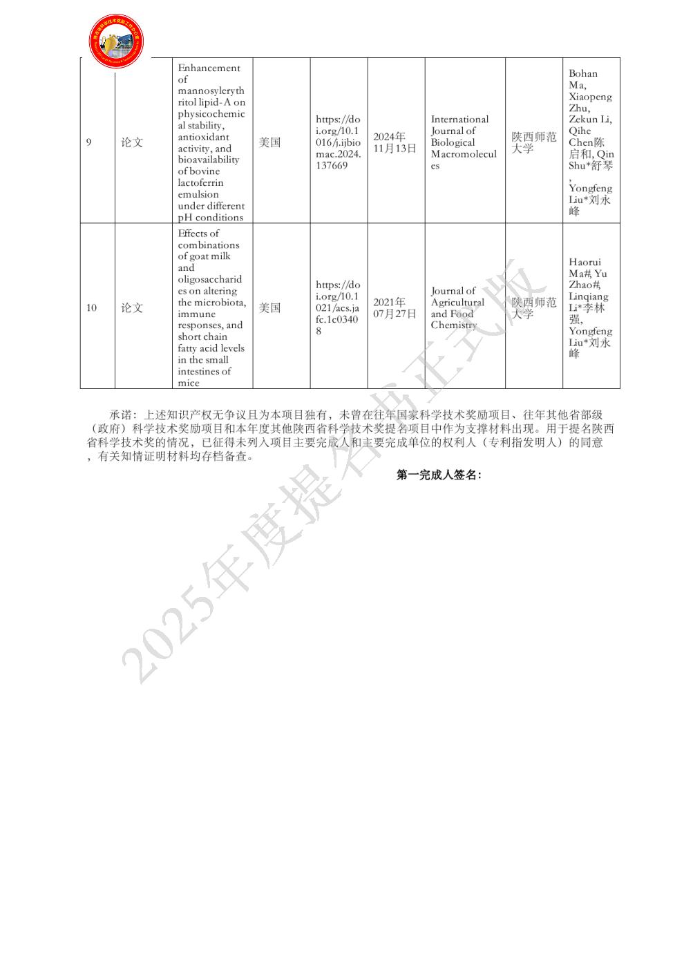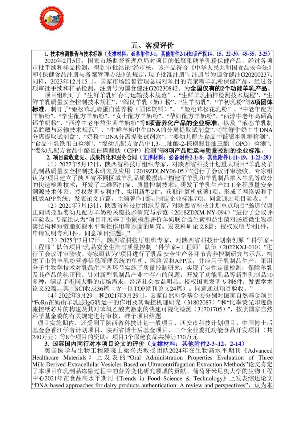 经审核,该项目成果材料齐全、规范。经公示,无知识产权纠纷,人员排序无争议,符合2025年度陕西省科学技术奖科学技术进步奖提名条件。提名该项目为陕西省科学技术进步奖一等奖。 |
