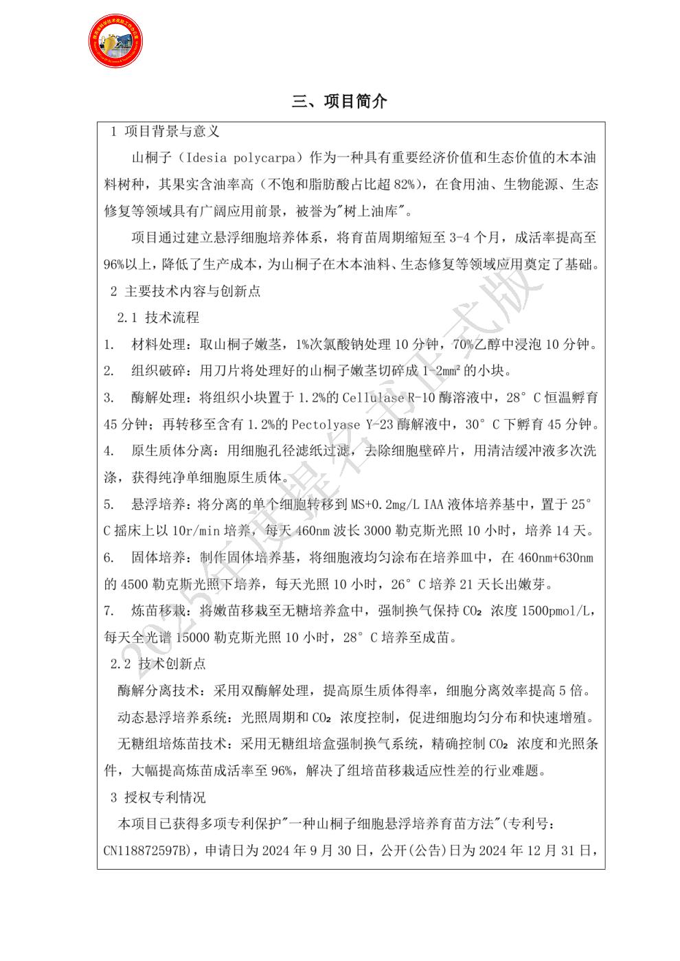 单位贡献:陕西青美生物科技有限公司作为“一种山桐子细胞悬浮培养育苗方法”项目的核心承担单位,在该技术的科技创新与应用推广中作出了根本性贡献: