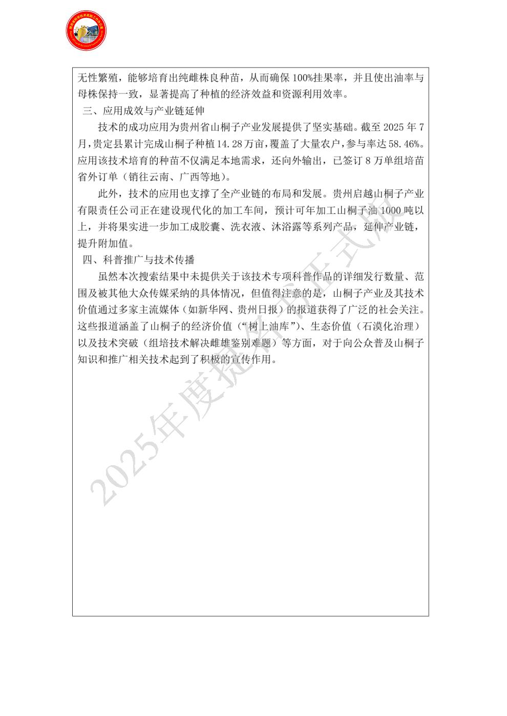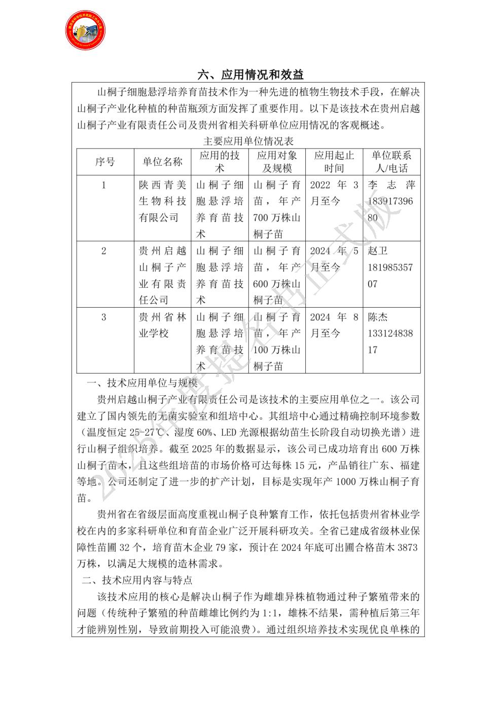 3. 社会与生态效益:技术支撑了陕西、贵州10万余亩山桐子基地的建设,助力乡村振兴。