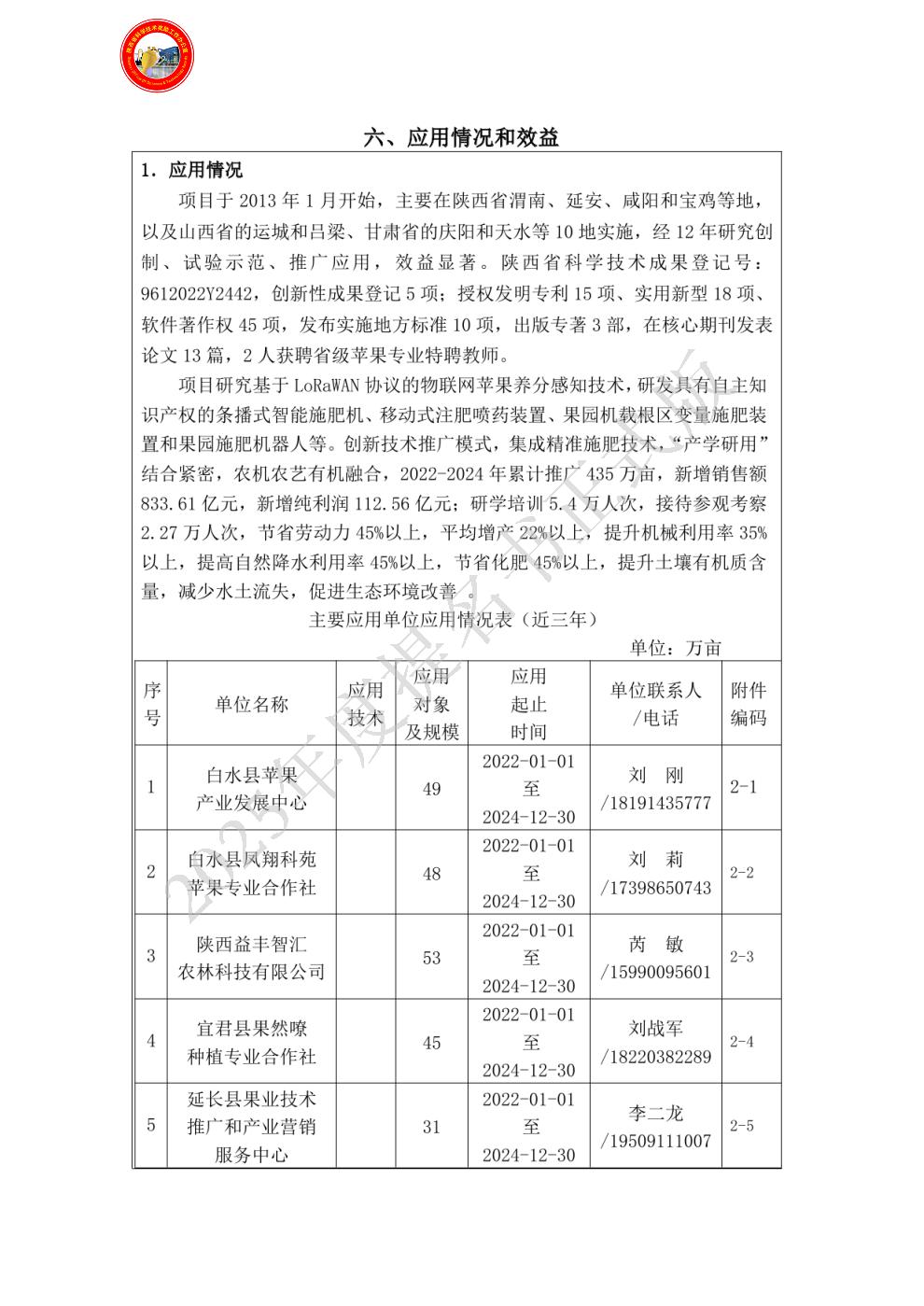 证明材料见附件编号:1-1 1-2 2-1至2-10 6-4 7-1 8-1 曾获国家科技奖励情况:2025年7月获陕西省“三新三小”创新竞赛优秀成果“二等奖”,2021年8月获第五届陕西省农村创业创新大赛“三等奖”,2019年8月获第四届农业科技创新创业大赛渭南赛区“第一名”,2021年7月获渭南市创新创业大赛“二等奖”,2017年6月获“优秀科技工作者”,2018年12月获“务果状元”。