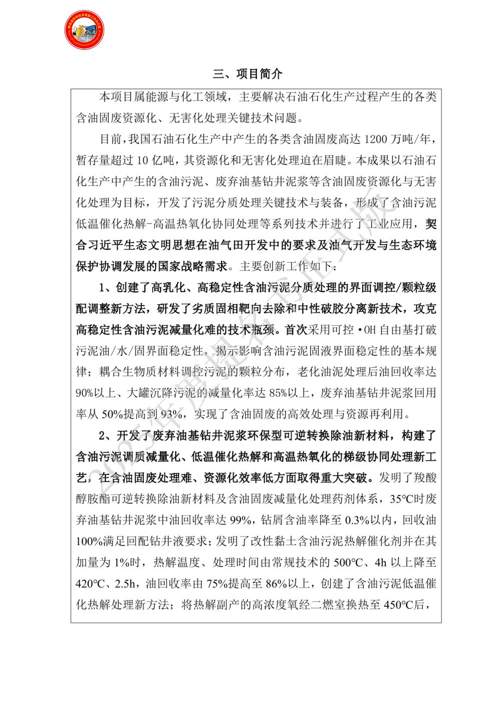 单位贡献:1、协助发明含油污泥高温热氧化的梯级协同处理技术新工艺,满足了污泥无害化处理要求。