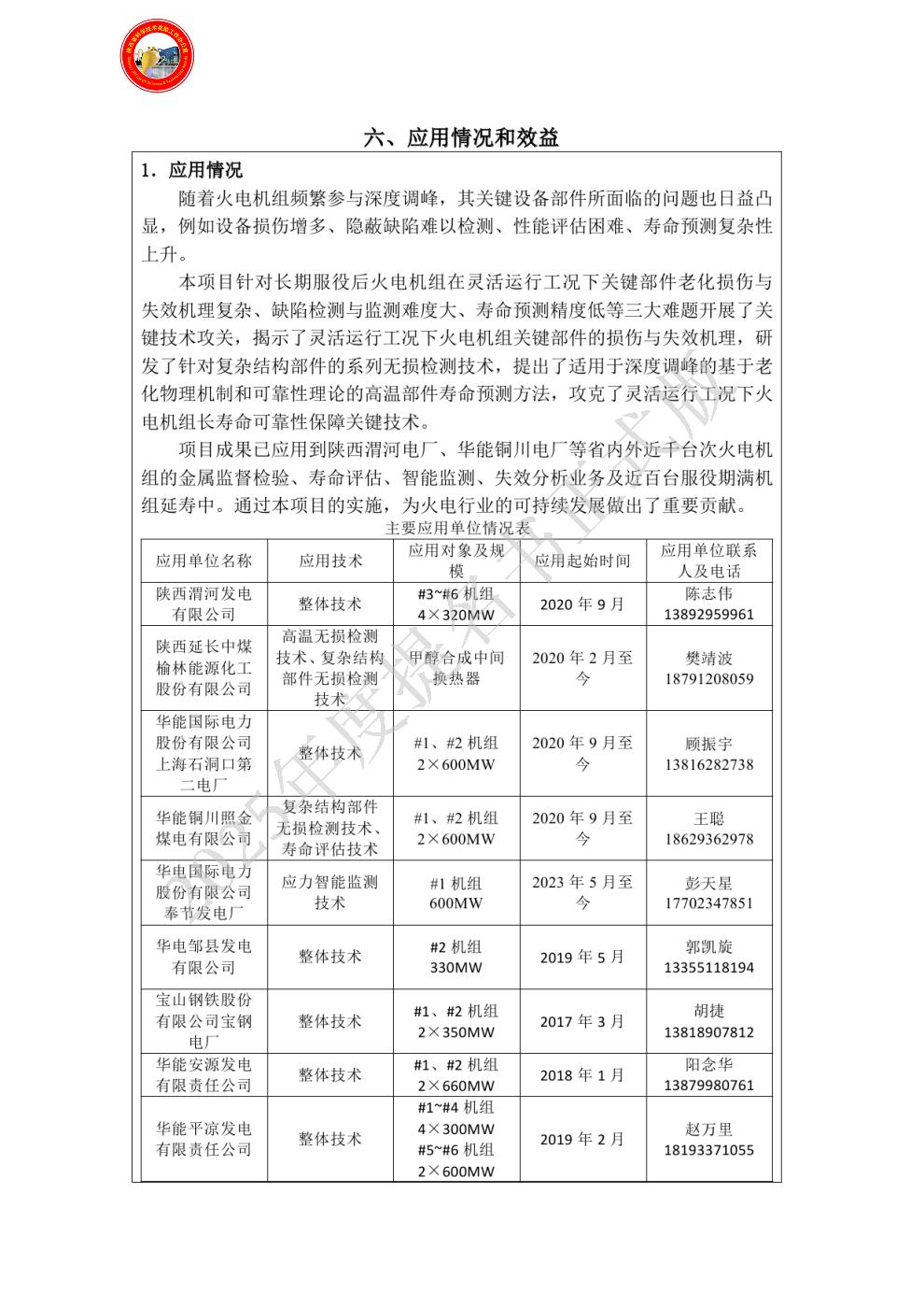 单位贡献:具体负责项目技术成果在本单位机组金属监督与高温无损检测工作中的推广应用。