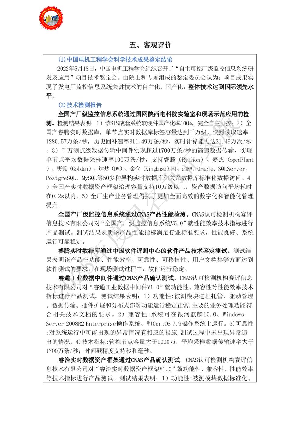 排名:7 行政职务:专责 技术职称:高级工程师 工作单位:华能秦煤瑞金发电有限责任公司 对本项目技术创造性贡献:项目主要成员,全国产电站厂级监控信息系统关键技术现场应用的主要负责人之一。作为骨干完成了全国产厂级监控信息系统应用功能软件的架构设计和功能需求方案,承担了成果实施的现场技术工作。研究并设计了电力企业实时数据治理框架、对本成果所列的主要科技创新3的研究及的应用推广做出重要贡献。旁证材料:附件2、附件5-1附件5-3。 曾获国家科技奖励情况:(1)《全国产智能型分散控制系统关键技术研制与应用》获中国能源研究会能源创新奖一等奖;2022-0285-J-1-02-D04: