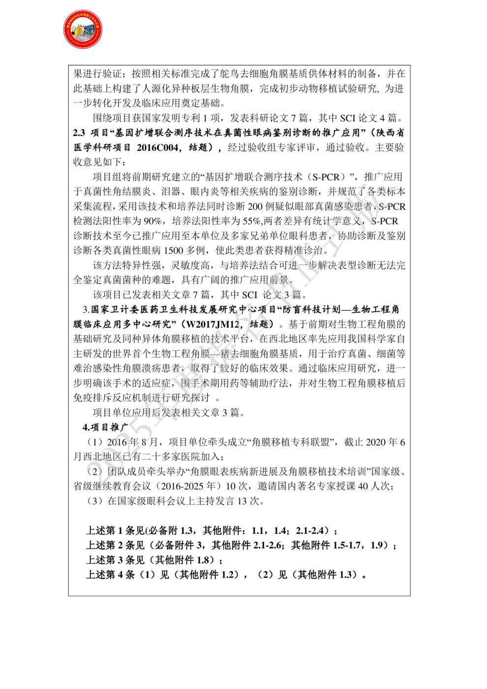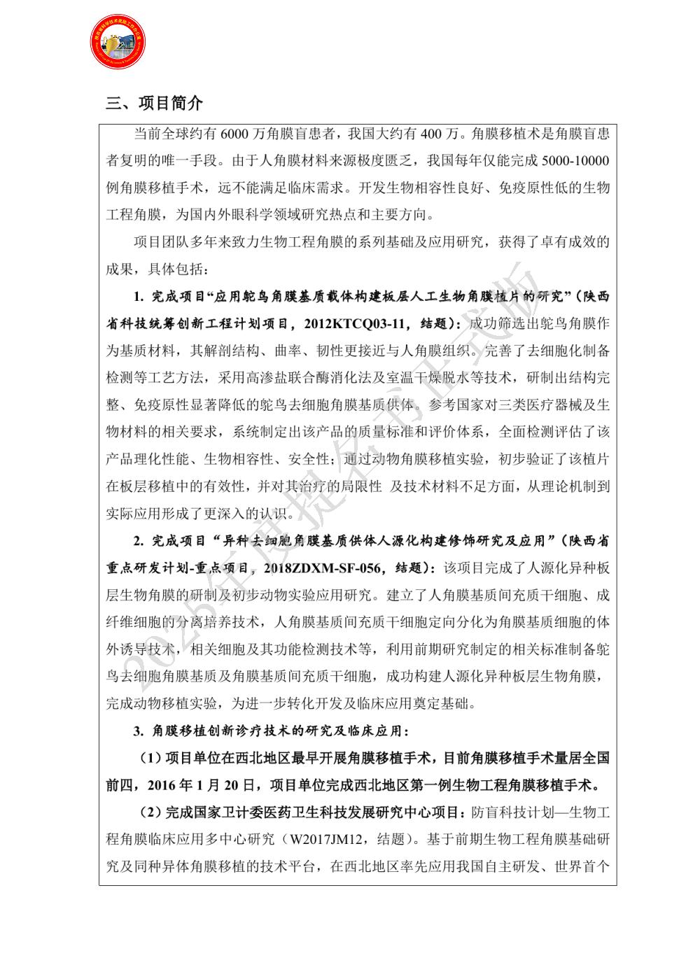 2010年陕西省科学技术三等奖《人工生物角膜的研制及应用》第二(2010-3-103-R2);