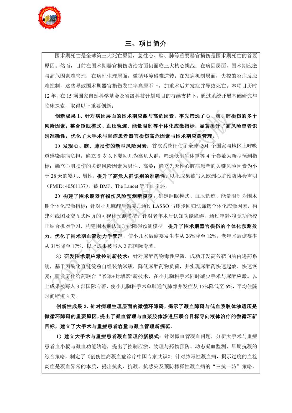 | 学科专业评审组: | 医药卫生组 | | 项目名称: | 围术期心脑肺损伤的创新防治策略与应用 |