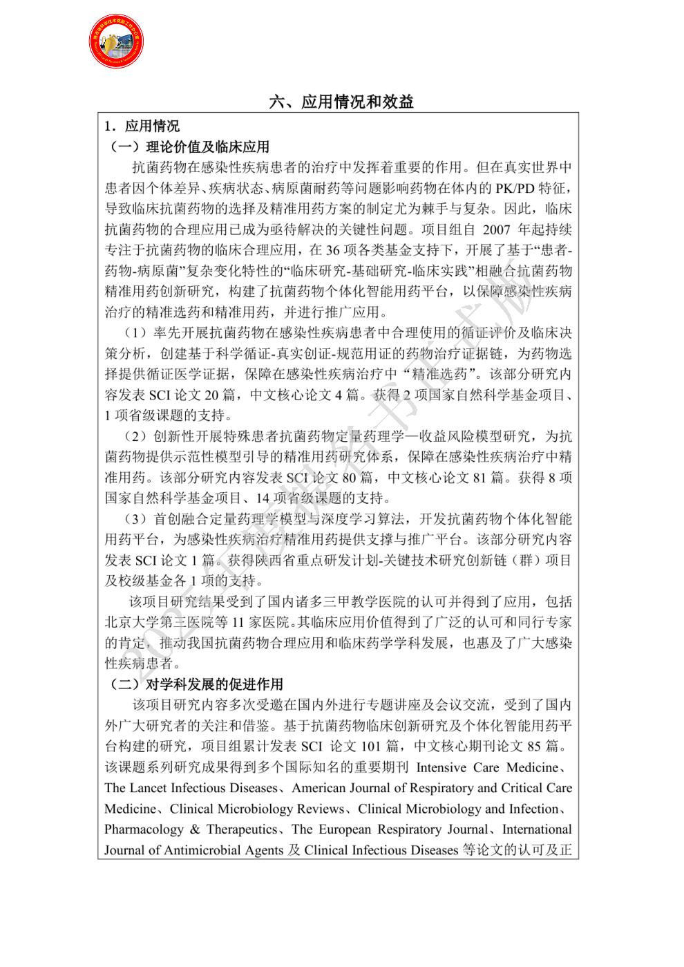 2. 佐证材料:必备附件-1-1、1-2,其他附件-3-2、3-3。 曾获国家科技奖励情况:1. 陕西省自然科学优秀学术论文二等奖:侵袭性真菌感染患者伏立康唑药动学参数影响因素及利用蒙特卡洛模拟法优化给药方案(编号:2017132028,第三完成人,2017)。