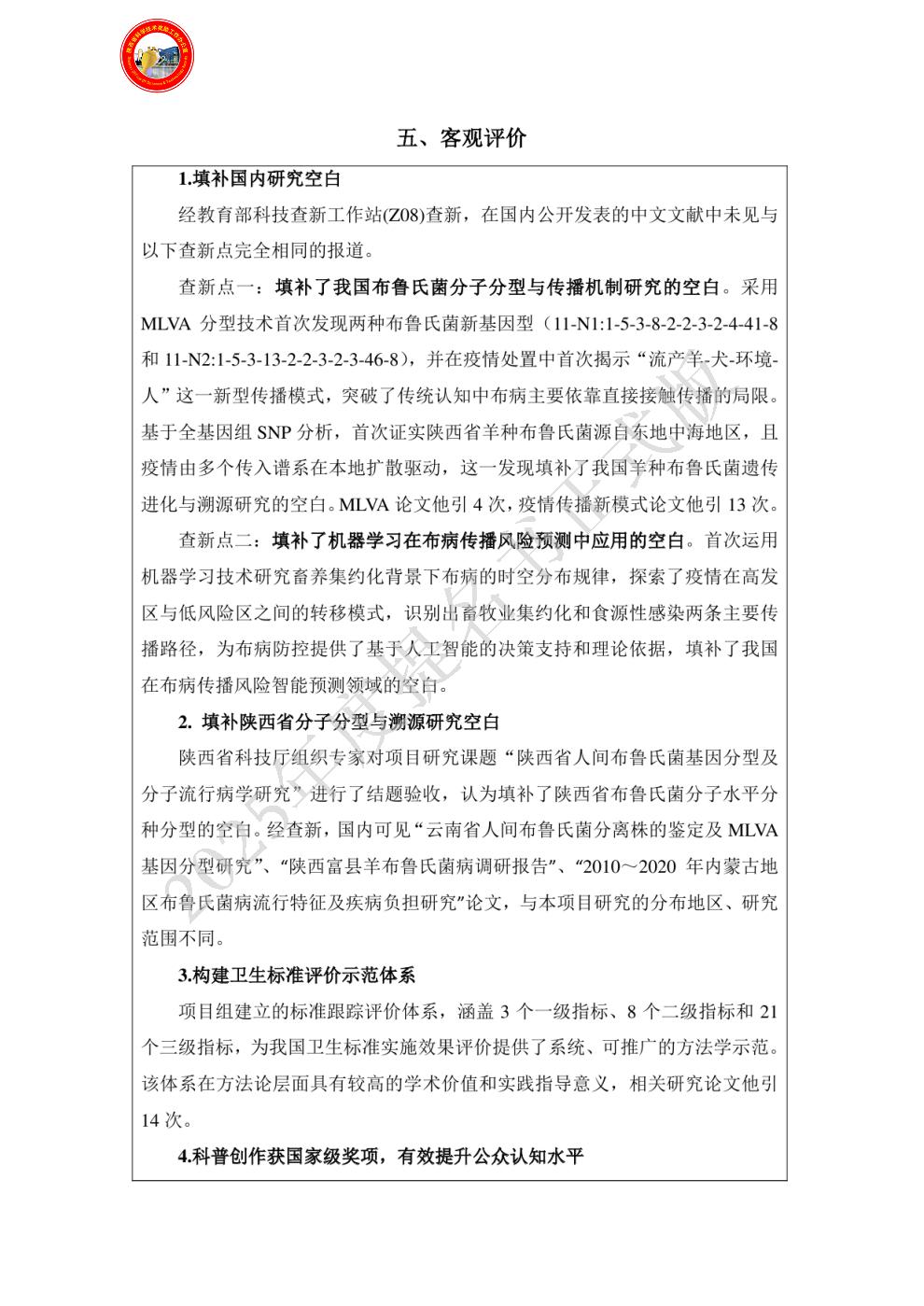 | 主要完成单位及创新推广贡献: | - 单位名称:陕西省疾病预防控制中心(陕西省预防医学研究所)