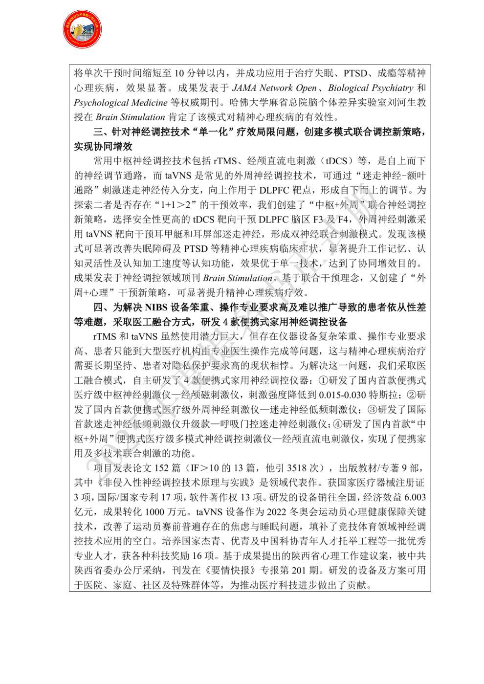 单位贡献:西安科悦医疗股份有限公司聚焦医疗器械的生产和经营,近年作为精神心理疾病神经调控技术产业化的创新驱动型企业,联合西安电子科技大学建成2个专项实验室,组建39人跨学科团队(含教授/副教授5人、博士7人),自主研发了多款神经调控设备,突破传统技术瓶颈,达国际国内前沿水平。同时整合全国多家三甲医院,构建了多中心临床实验平台。凭借医疗器械注册、ISO13485管理优势破解“科研-产业”衔接难题,研发的设备获NMPA二类认证4项,已应用于全国多个省市几百家医院。公司持续突破技术壁垒并推动成果落地,为行业创新与医疗资源优化提供关键支撑。以“技术赋能—成果转化—生态拓展”全链条体系为本项目研究提供了技术工程化、成果产业化支撑,实现了创新价值向社会价值的全面转化。