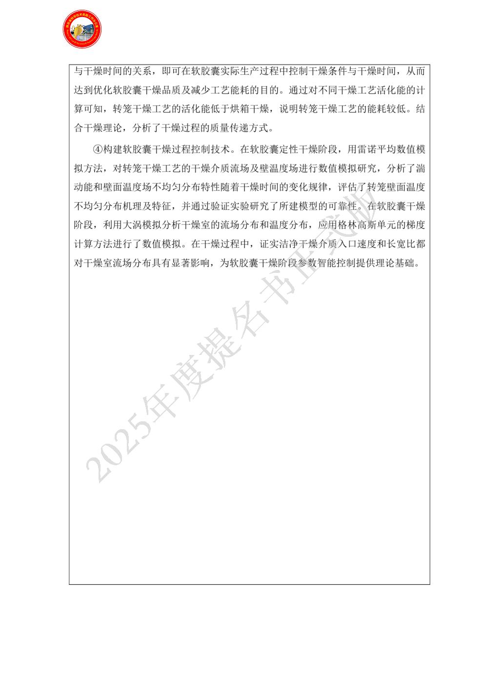 排名:5 行政职务:无 技术职称:教授 工作单位:陕西中医药大学 对本项目技术创造性贡献:本人参与了软胶囊剂型的处方设计与干燥车间流场分析的研究工作,证明材料见附件。 曾获国家科技奖励情况:(1)中药软胶囊剂型改进开发与应用,2024年陕西高等学校科学技术研究优秀成果奖(二等)第6完成人;2024.6