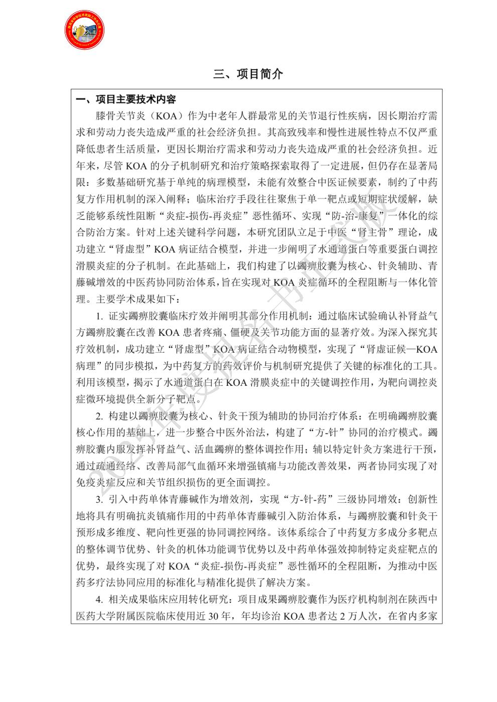 | 主要完成单位及创新推广贡献: | - 单位名称:陕西中医药大学