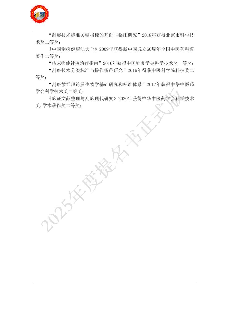 | 提名单位意见: | “循经刮痧的生物学效应及转化应用研究”项目紧密围绕传统中医循经刮痧技术的现代化发展需求,系统揭示了其生物学机制并实现了临床转化,具备显著的科学价值与应用前景,现郑重提名申报陕西省科学技术进步奖。