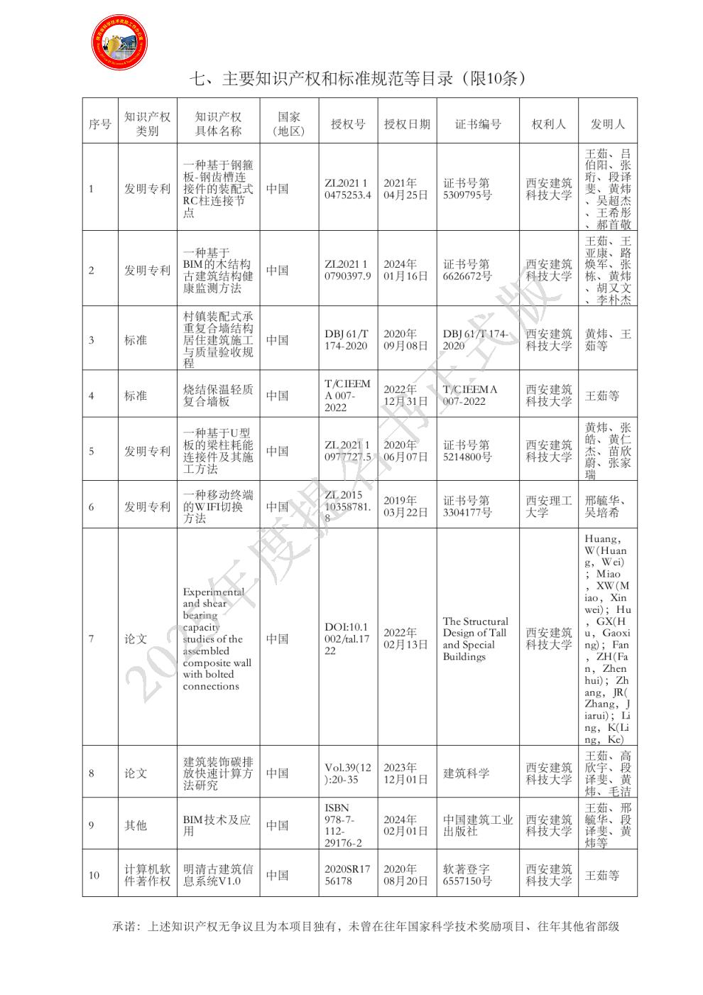 排名:1 行政职务:无 技术职称:教授 工作单位:西安建筑科技大学 对本项目技术创造性贡献:项目主持人,负责项目方案总体规划、技术研发应用及推广全过程,对本项目所有创新点均有创造性贡献。主持完成国基金面上等项目;建立可复用参数化构件体系,为智能化建造提供支撑。研发多种适用于PC构件生产调度优化模型;提出以知识信息为基础的语义推理智能决策技术;是基于钢箍板-钢齿槽连接件的装配式RC柱连接节点、一种基于BIM的木结构古建筑结构健康监测方法等多项发明专利的第一完成人,是烧结保温轻质复合墙板技术标准的主要完成人;研究实现BIM模型在Web端的轻量化技术,解决BIM模型对硬件要求高的瓶颈,在此基础上实现了基于BIM的协同管理系统平台,在多个项目中取得很好的应用效果。 曾获国家科技奖励情况:2024陕西省教育厅科技进步一等奖