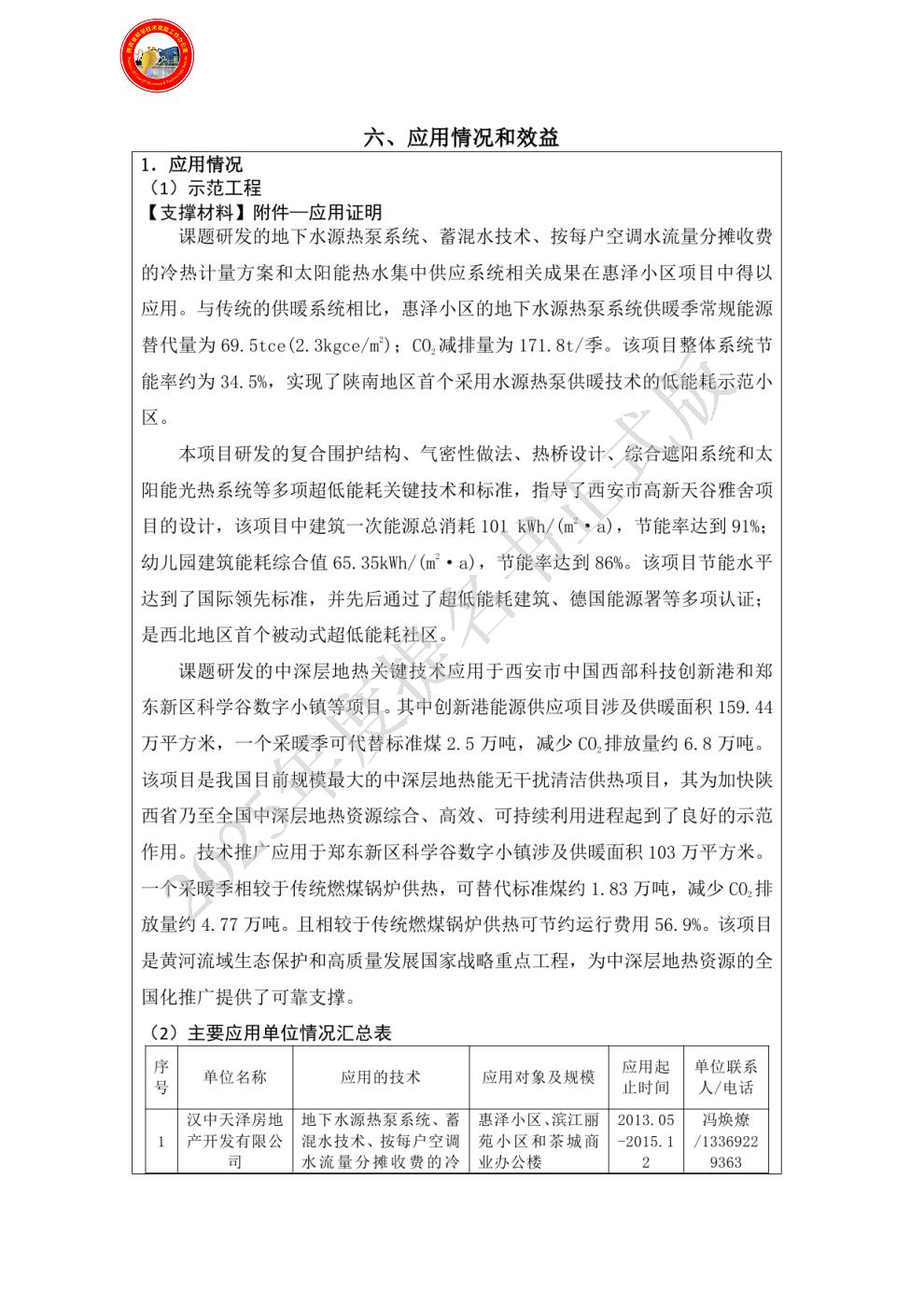 单位贡献:本项目的主要完成单位,对创新点(1),(2),(3)均有重要贡献。开展大量节能降碳理论研究,主持编制相关的技术规程和图集,提出了建筑围护结构热桥计算方法,研发相关高效节能采暖设备,提出了地下水源热泵系统协同优化新技术,确立了基于蓄混水技术的地下水源热泵系统,建立了地下水源热泵系统优化设计和工程应用适应性评价方法。针对在进行热计量的同时要进行温度的多点测量这一缺点,提出了基于流量热量关系模型的地板辐射采暖热计量方法和基于流量冷量关系模型的风机盘管冷计量方法。推动陕南城镇居住建筑水源热泵系统供暖节能降碳技术的应用示范和推广,推动陕西省城镇居住建筑节能降碳标准规模化应用。拥有本项目50余项发明专利、实用新型及软件著作的所有权,是本项目80余篇相关论文的第一署名单位。