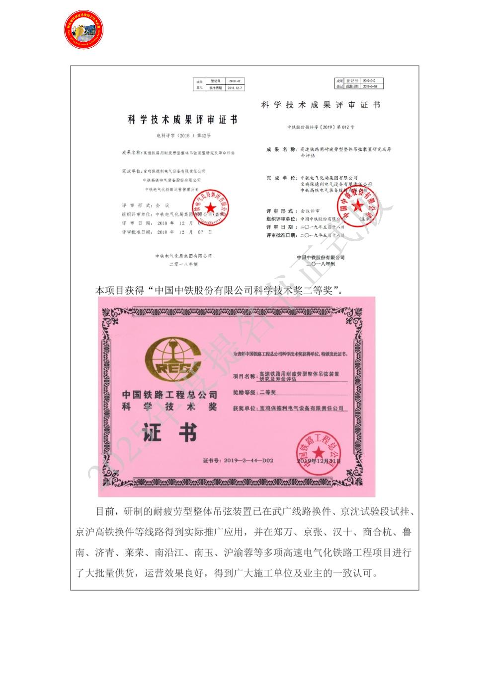 该项技术的各项成果已成功应用于京沪高铁换件、郑万、京张、汉十、商合杭、鲁南、济青、莱荣、南沿江、南玉、沪渝蓉以及印尼雅万高铁等多项高速电气化铁路工程。 |