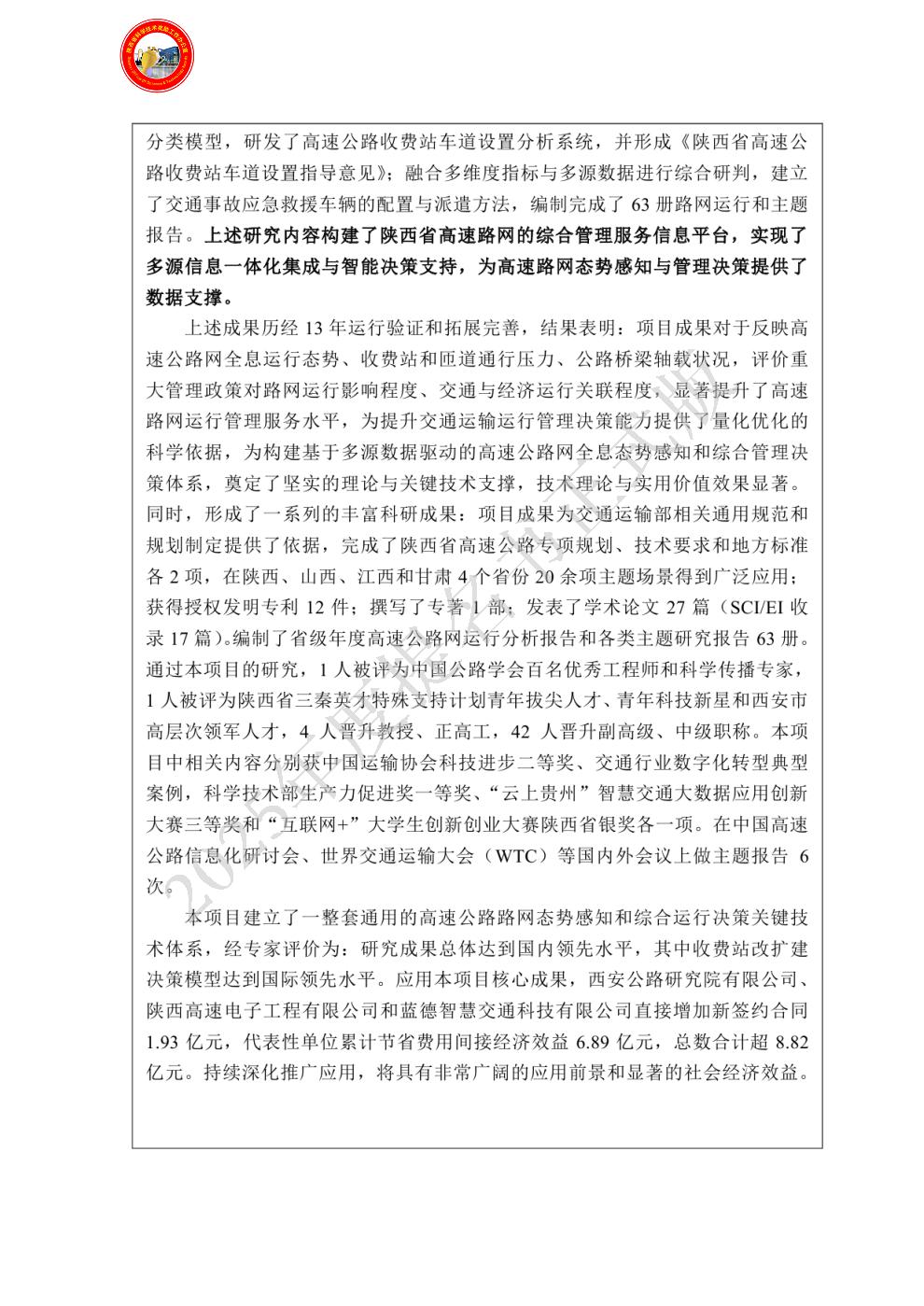 单位贡献:1.深度参与三项科研研究,提出应用场景和功能需求,并提供了全省高速公路相关收费明细数据;