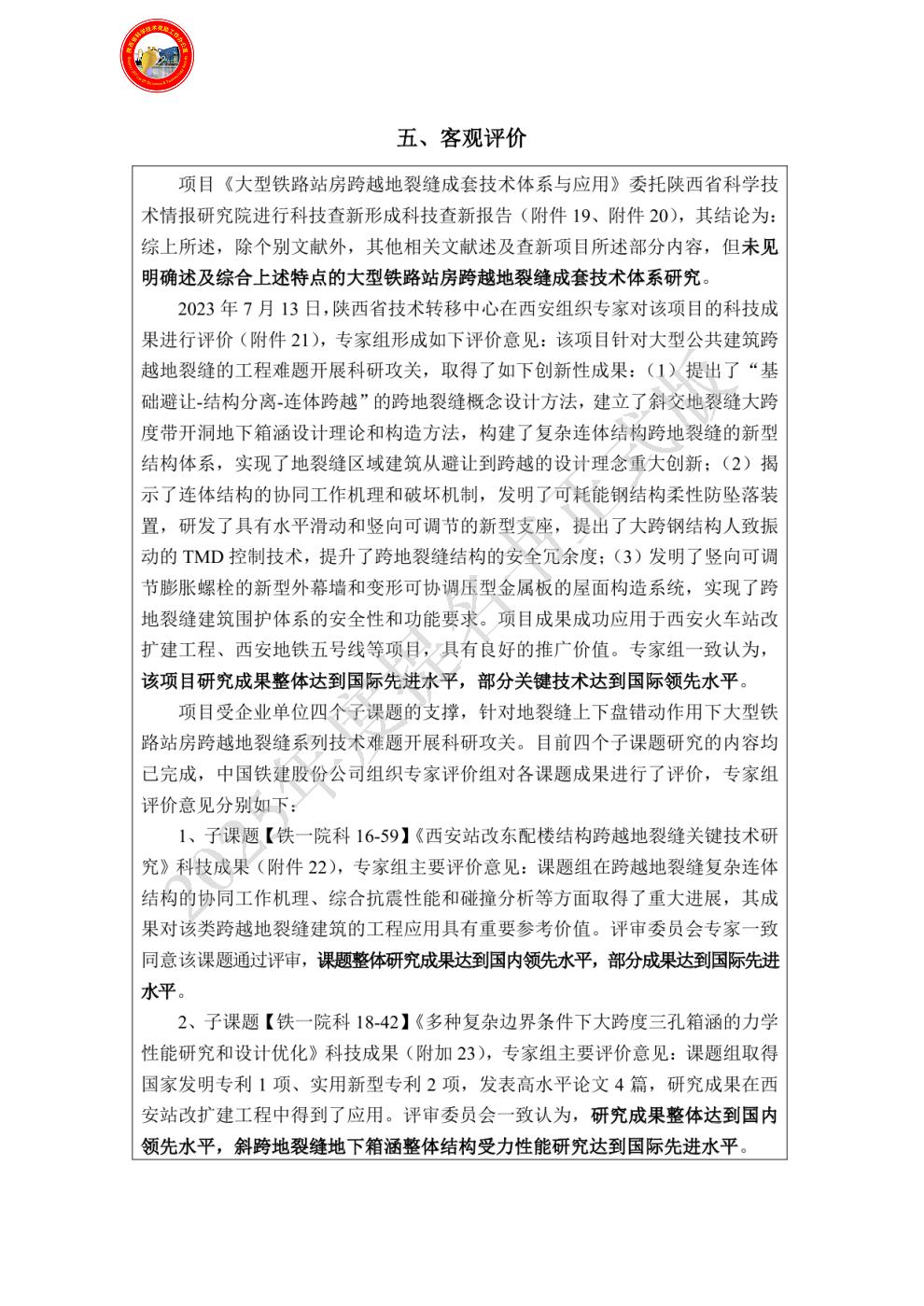 依托项目,授权发明专利6项、实用新型专利9项,发表论文13篇,出版省地方标准1项,形成省部级工法2项。研究成果成功应用于西安火车站改扩建工程,该工程获得国际工程类大奖—FIDIC优秀工程奖。同时,相关成果也在西安地铁五号线等项目推广,取得显著经济社会效益。经专家组评定,成果整体达国际先进水平,部分关键技术达国际领先水平。
