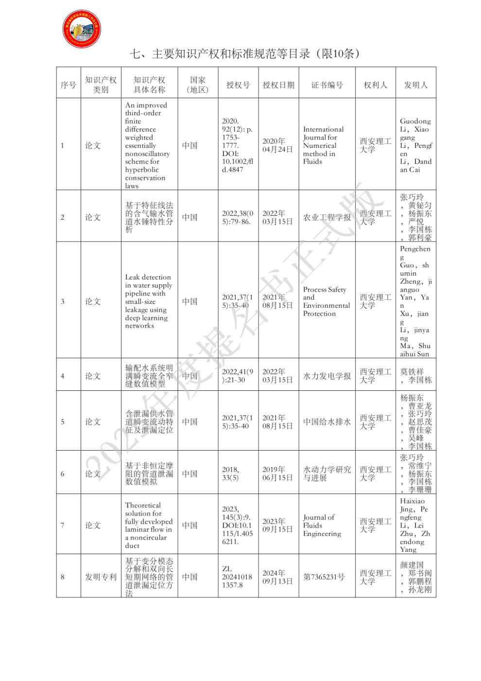 主要贡献证明材料附件编号:1-1-2、1-2-13、1-2-14、2-1-3、2-1-5、2-1-8、2-1-14、2-1-15、2-1-16、2-1-17、2-2-2、2-2-3、2-2-4、2-2-7、2-3-1、2-4-1 曾获国家科技奖励情况:2024年,陕西高等学校科学技术研究优秀成果,二等奖,含明满流交替的复杂水力过渡过程模拟及瞬变流法泄漏检测定位方法,第三完成人。 - 姓名:荆海晓