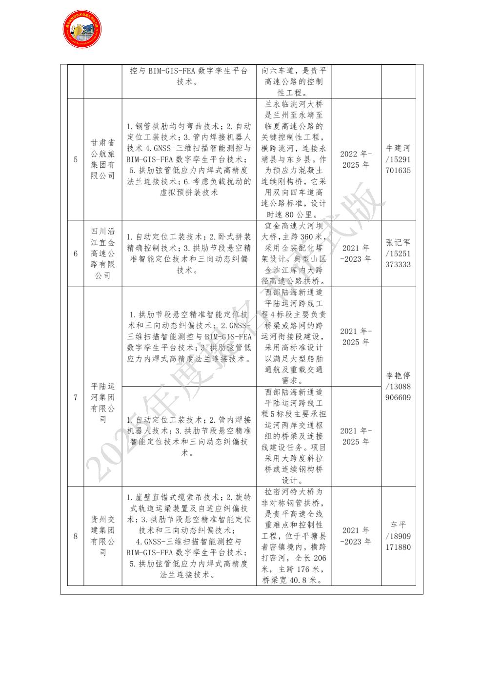 单位贡献:专注技术推广与成果转化,组织 15 场全国性技术交流会,编制《大跨度钢管拱桥施工工法手