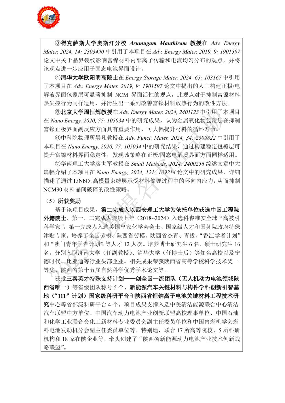 排名:5 行政职务:院长 技术职称:高级工程师 工作单位:陕西红马科技有限公司 对本项目技术创造性贡献:全面统筹该项目中主要科学创新1.2中高镍三元正极材料的产业化总体方案的设计和推进,是主要知识产权中2和6发明专利的主要发明人(必备附件1-2,其他附件2-2)。 曾获国家科技奖励情况:[1] 中国有色金属工业科学技术奖,一等奖,高比能富镍/硅碳动力电池关键材料及应用技术