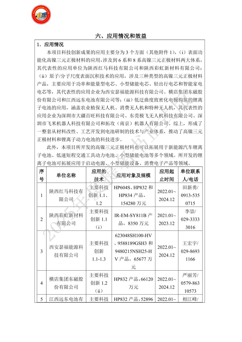 该项目选题新颖、特色鲜明、成果突出,科技进步显著,对陕西省低空经济和动力电池等领域的发展具有重要的推动作用。 |