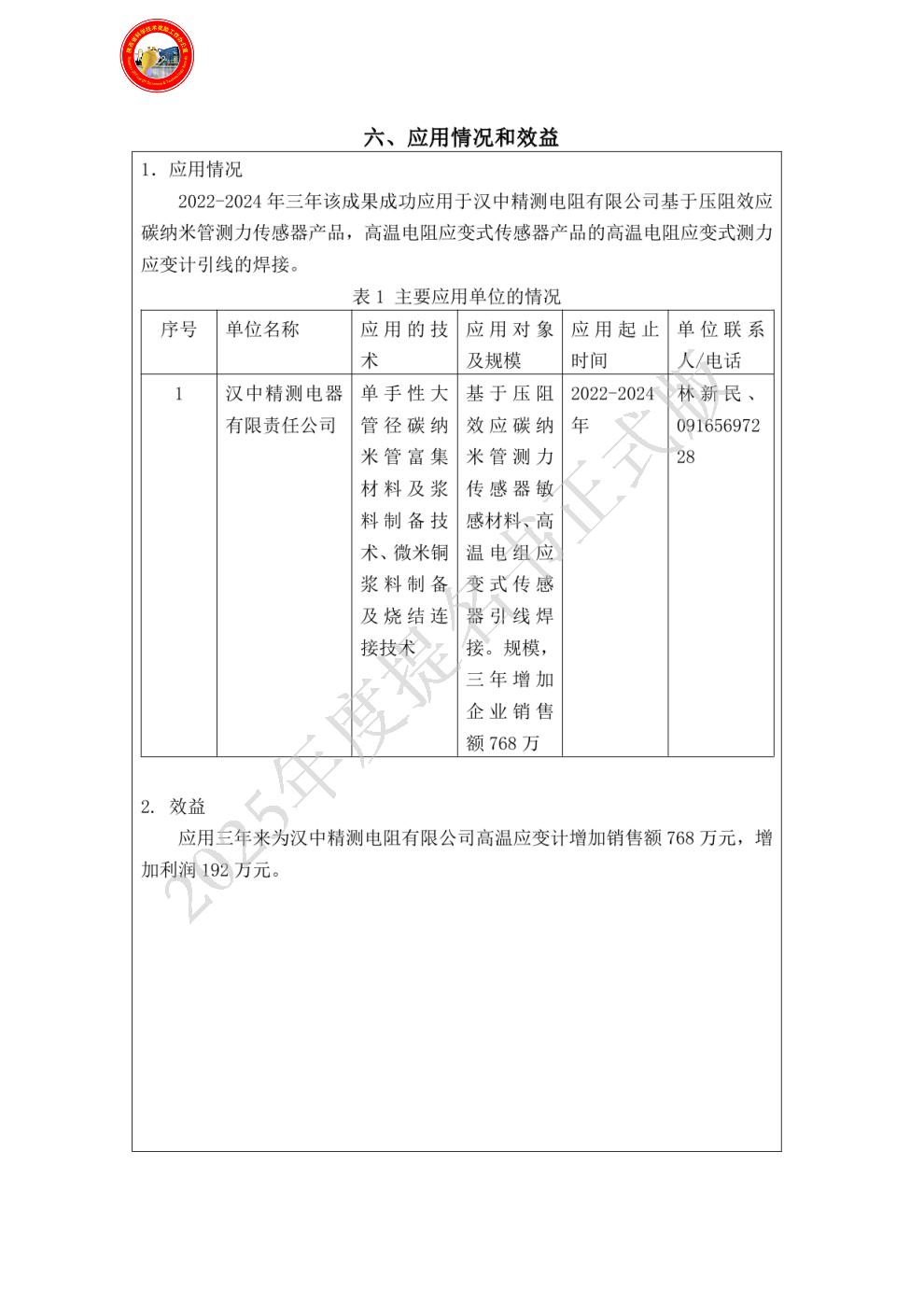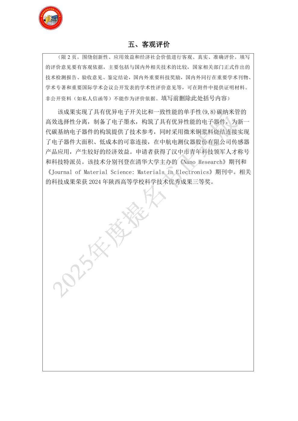 排名:3 行政职务:无 技术职称:无 工作单位:陕西理工大学 对本项目技术创造性贡献:碳纳米管的富集和碳纳米管墨水的制备技术 曾获国家科技奖励情况:陕西高等学校科学技术优秀研究成果三等奖,排名第三
