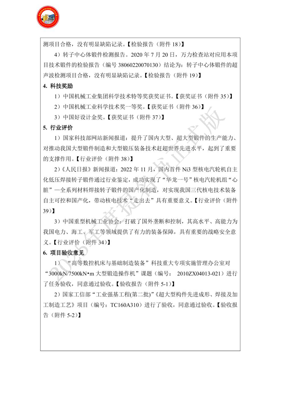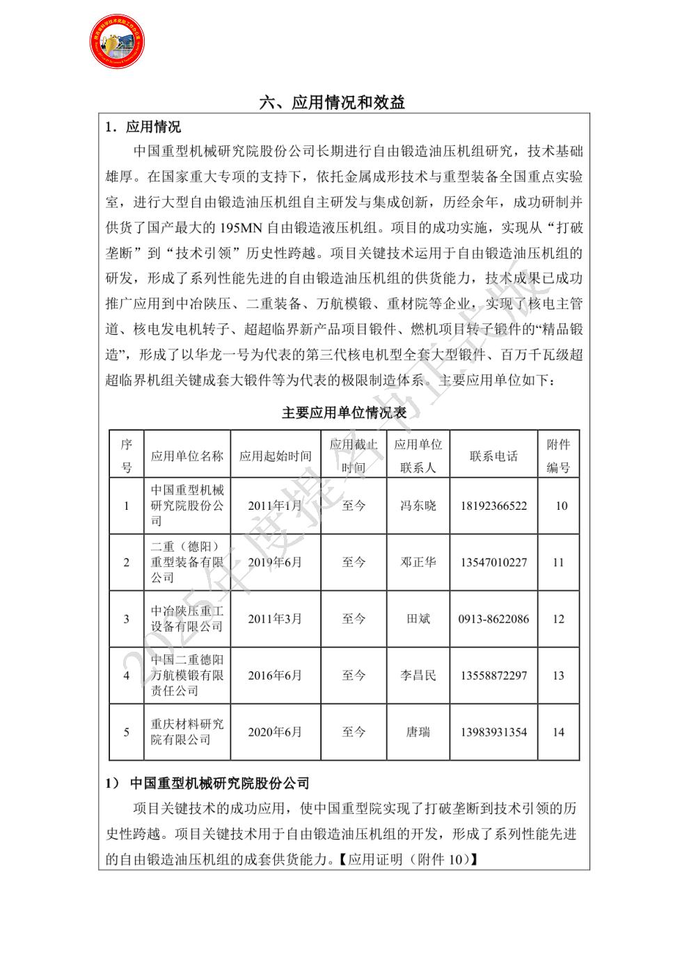 单位贡献:中国重型机械研究院股份公司作为本项目第一完成单位,在复杂构件绿色锻造形性控制关键技术及应用等方面取得了创新性突破,主要贡献如下: