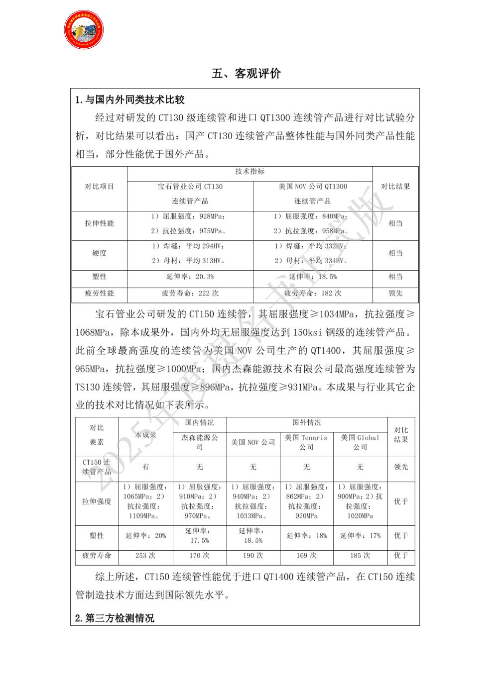 3、负责CT130连续管项目查新、产品第三方检测评价、产品下井试验及性能跟踪;