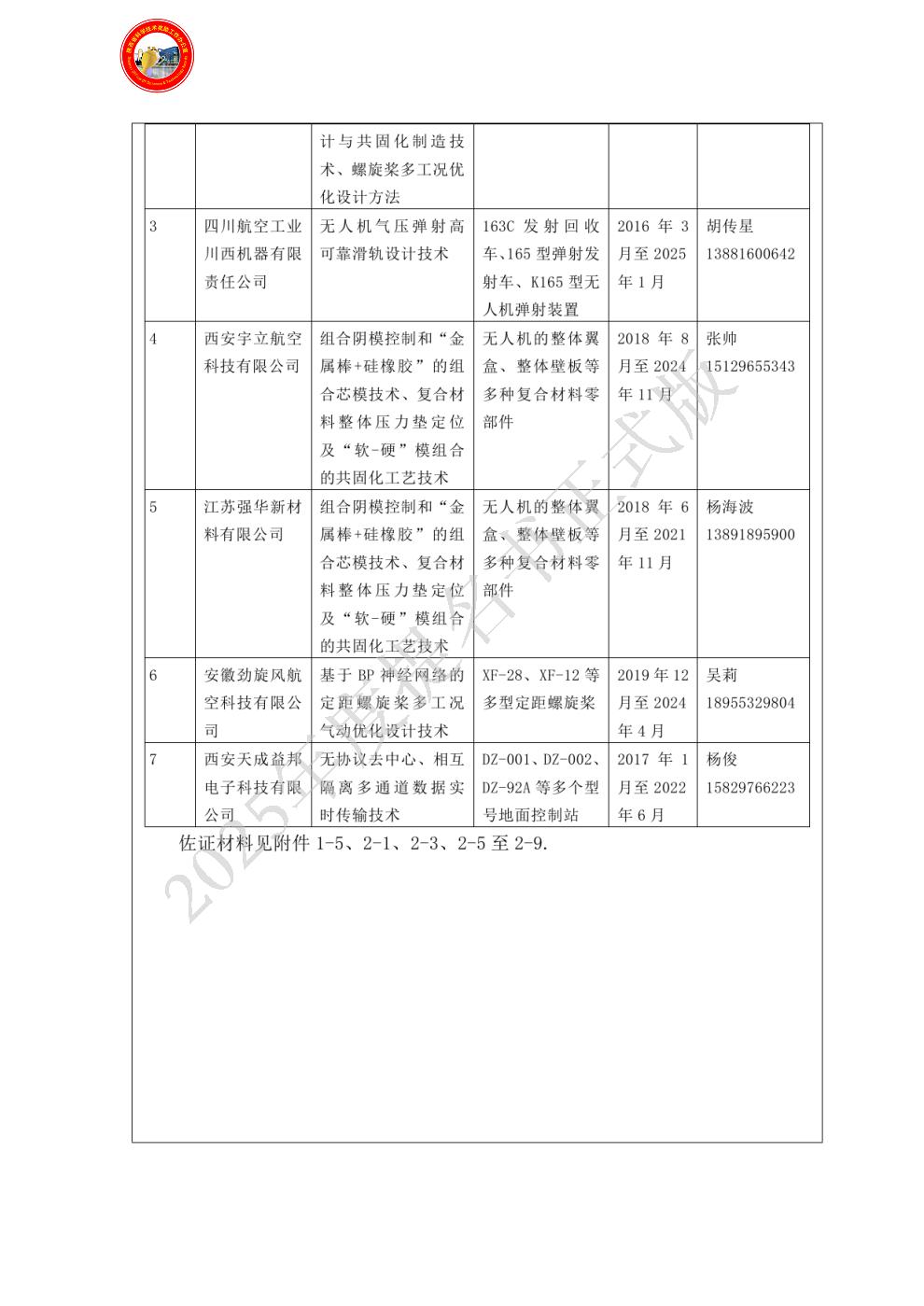 排名:1 行政职务:副主任 技术职称:高级工程师 工作单位:西安爱生技术集团有限公司 对本项目技术创造性贡献:飞机技术负责人,主持完成无人机方案、初步和详细设计。
