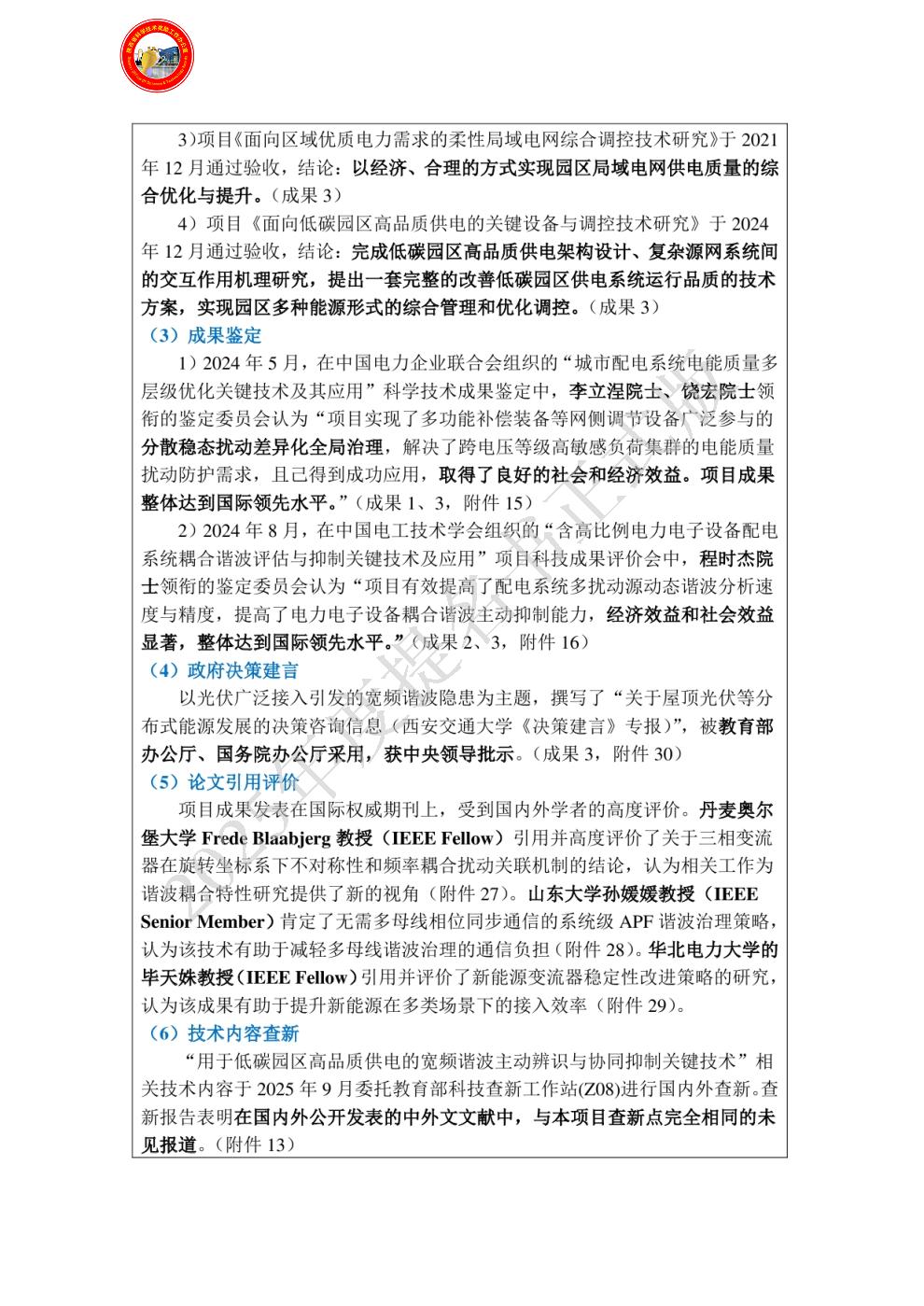 排名:1 行政职务:无 技术职称:教授 工作单位:西安交通大学 对本项目技术创造性贡献:申报人主要承担了低碳园区多源互扰宽频谐波的理论方法研究、关键控制策略设计和调控系统架构设计工作,总体负责了关键技术攻关、核心设备开发和系统平台研制与落地的各项工作。具体包括:
