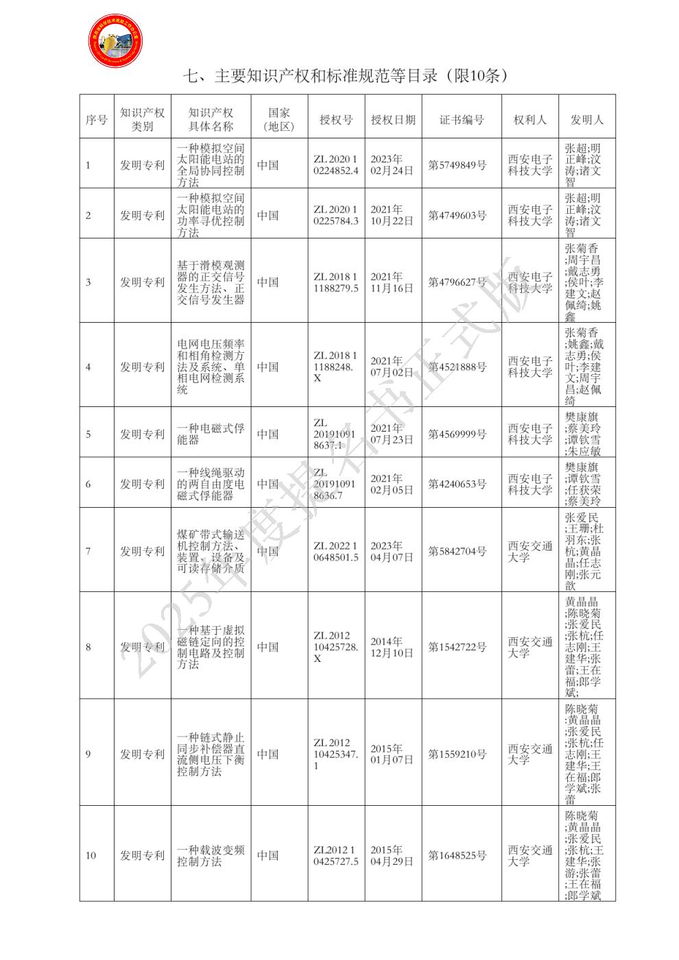| 主要知识产权和标准规范等目录: |
