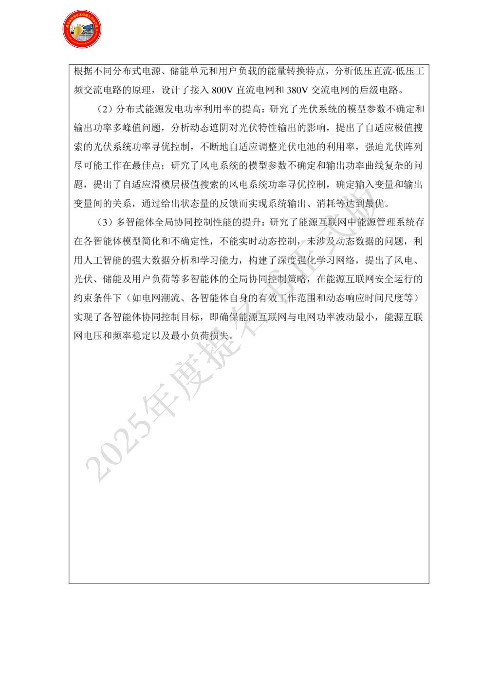 (1)参与了项目技术的工程应用,合作完成了一种模拟空问太阳能电站的功率寻优控制方法项目成果的工程应用。