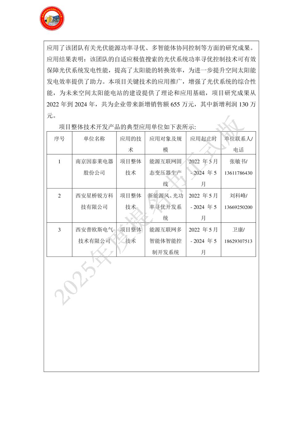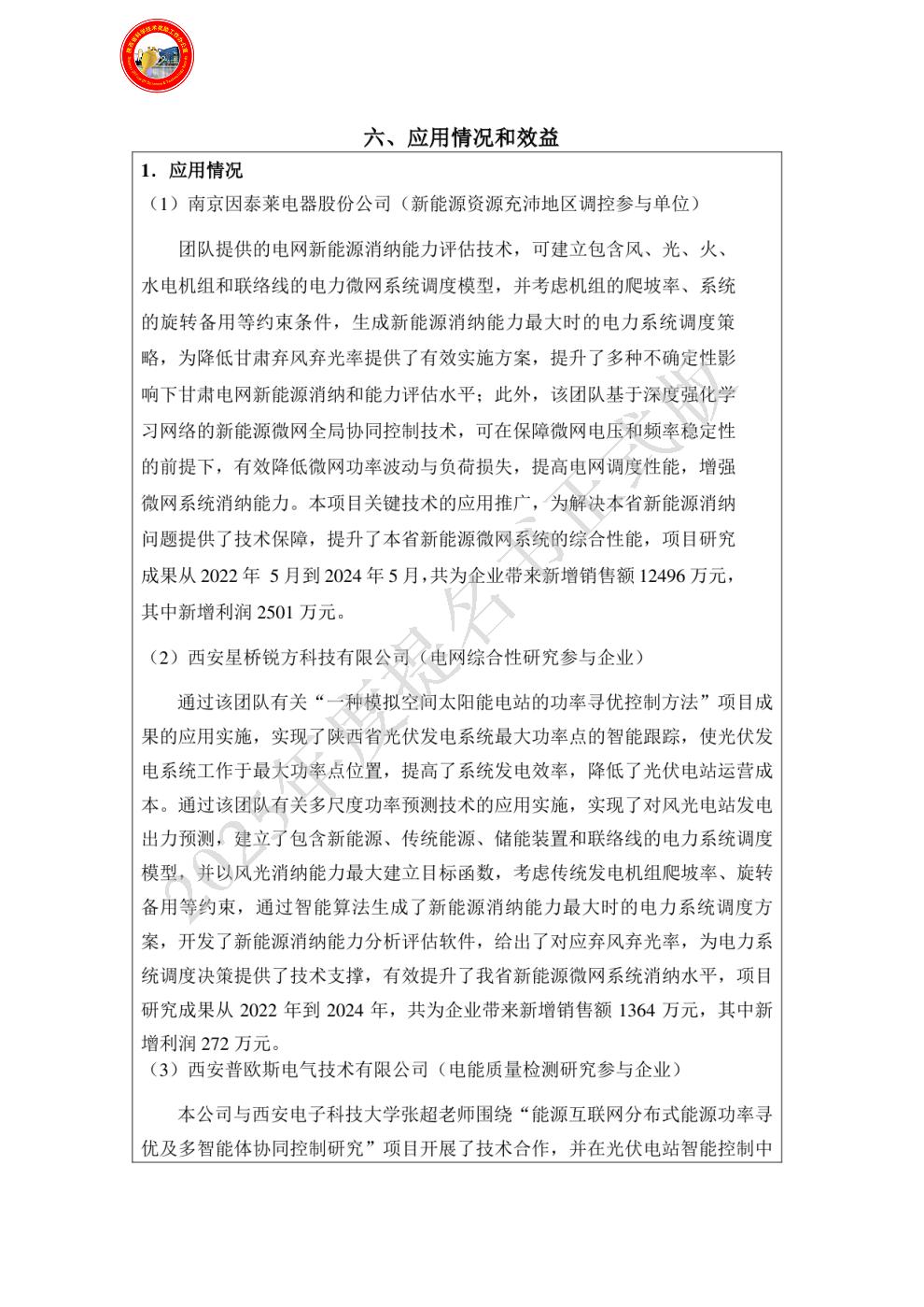 单位贡献:项目重要参与单位,在本项目中参与完成了创新点一、三的部分内容。作为第三完成单位西安绿能电力控制技术有限公司负责人。投入工作量占本人工作量的40%以上,