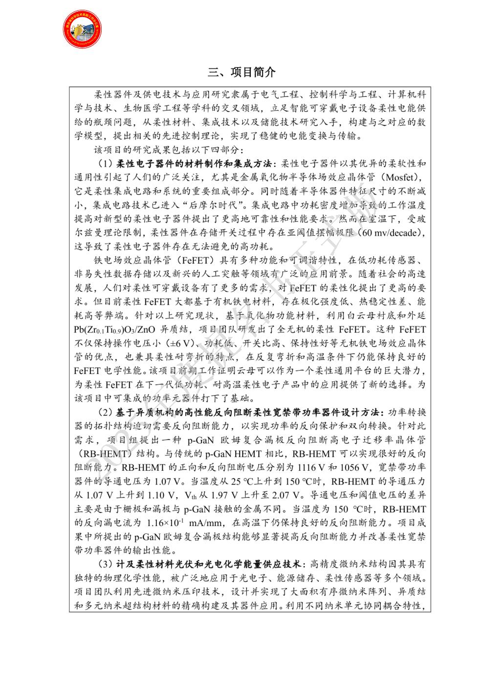 | 学科专业评审组: | 动力电气组 | | 项目名称: | 柔性器件及供电技术与应用 |