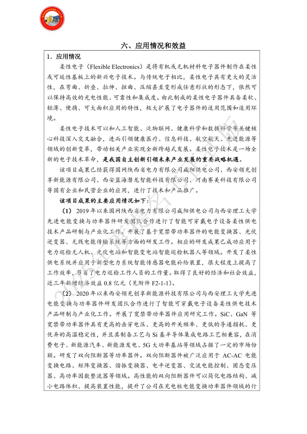 单位贡献: 国网陕西省电力有限公司咸阳供电公司是《柔性器件及供电技术与应用》项目的依托单位和主要完成单位,是第四完成人所在单位,负责该项目的实验验证并参与总体规划工作。