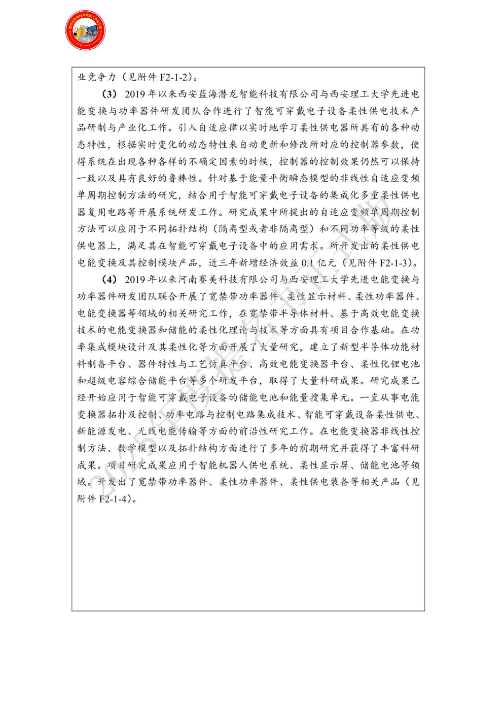 单位贡献:西安理工大学是《柔性器件及供电技术与应用》项目的依托单位和主要完成单位,是第一完成人、第三完成人、第五完成人和第六完成人所在单位,负责该项目的总体计划与实施。主要承担了该研究成果的规划、实施、项目转化和推广等全程各个环节的工作。学术贡献在于提出了柔性电能变换器拓扑和控制技术,解决了柔性电能变换器市场化应用的难题,彻底降低了智能可穿戴电子设备的供电成本,为该项目的完成奠定了理论基础,提供了技术支撑。