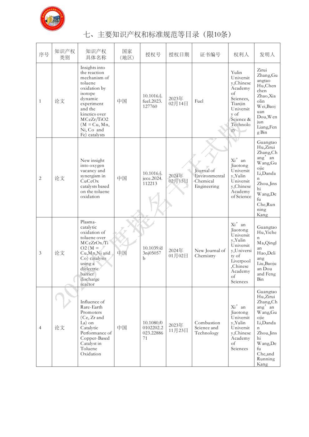 单位贡献:西安交通大学作为本项目的重要合作伙伴,在关键技术研发与系统优化层面发挥了不可替代的作用。特别是在 VOCs吸脱附材料研发、吸脱附过程与系统集成等方面提供了关键理论支撑和技术解决方案。