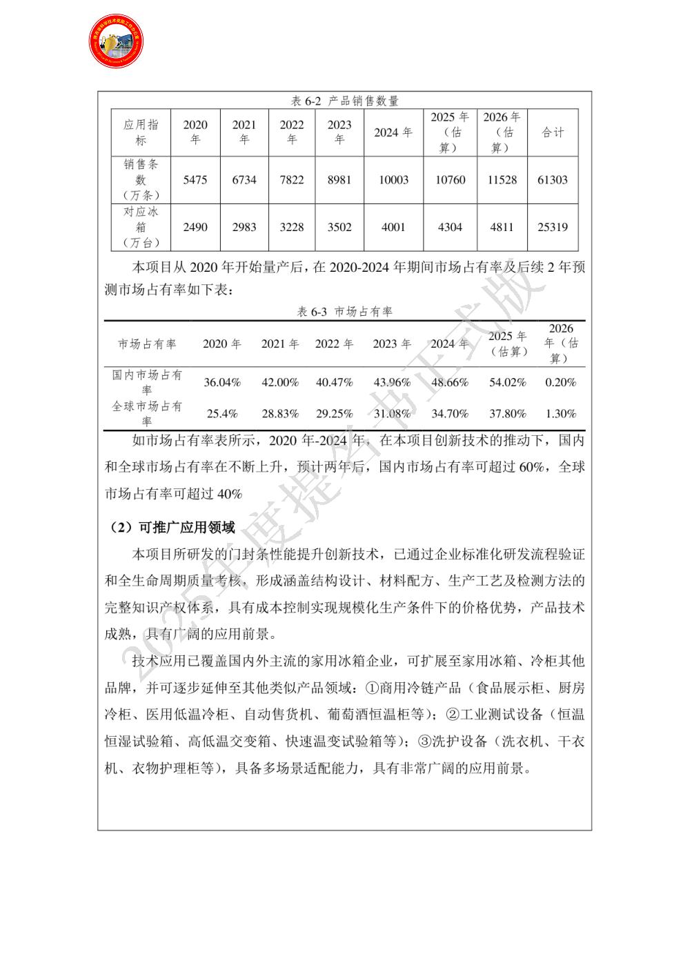 项目获授权发明专利13件,实用新型专利20项,发表论文20篇,主持制定行业标准1项。产品已规模化应用于国内外主流品牌冰箱,近五年实现销售收入26.29亿元,国内市场占有率超48%,稳居行业第一。