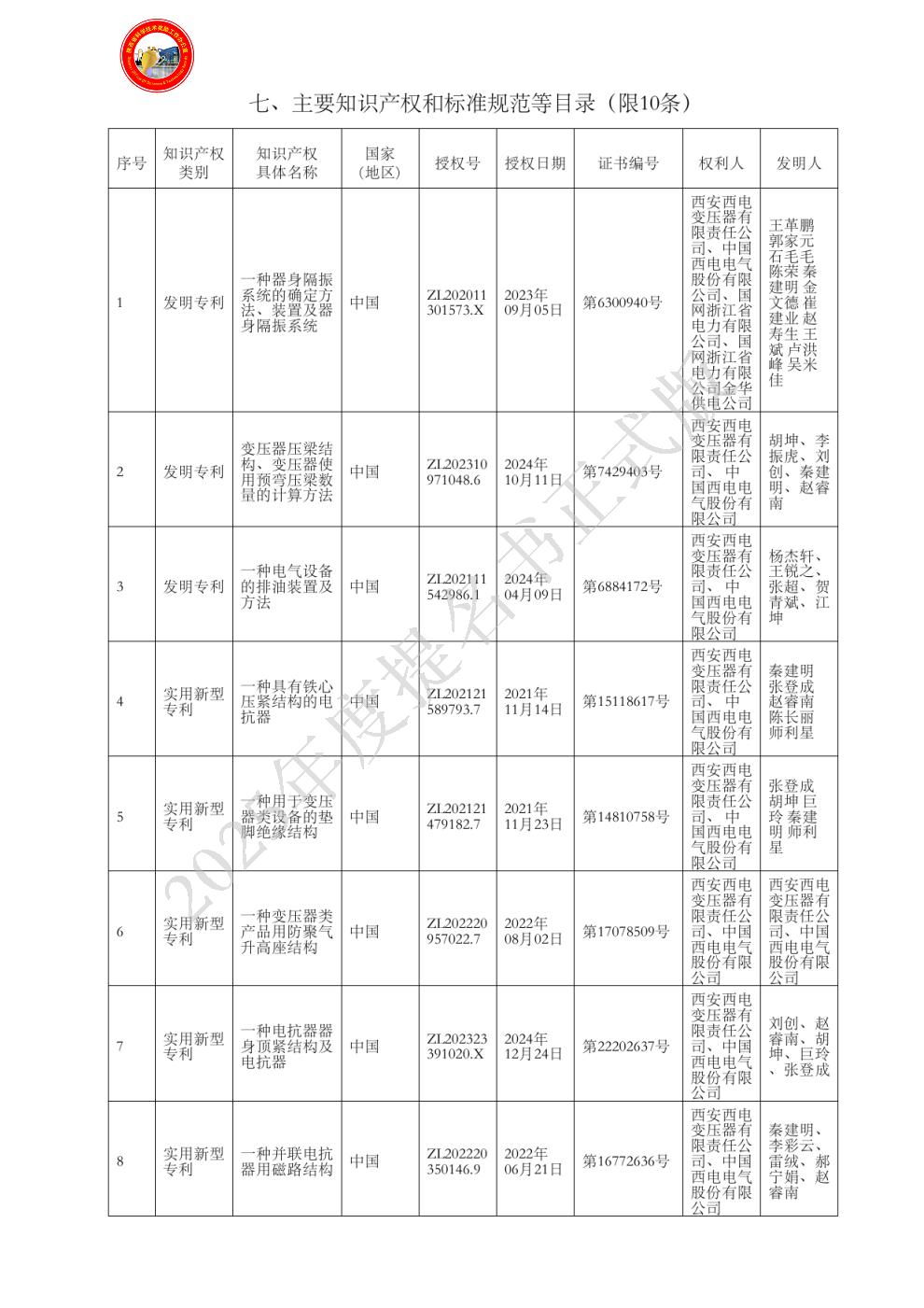 | 提名单位: | 中国西电电气股份有限公司 |