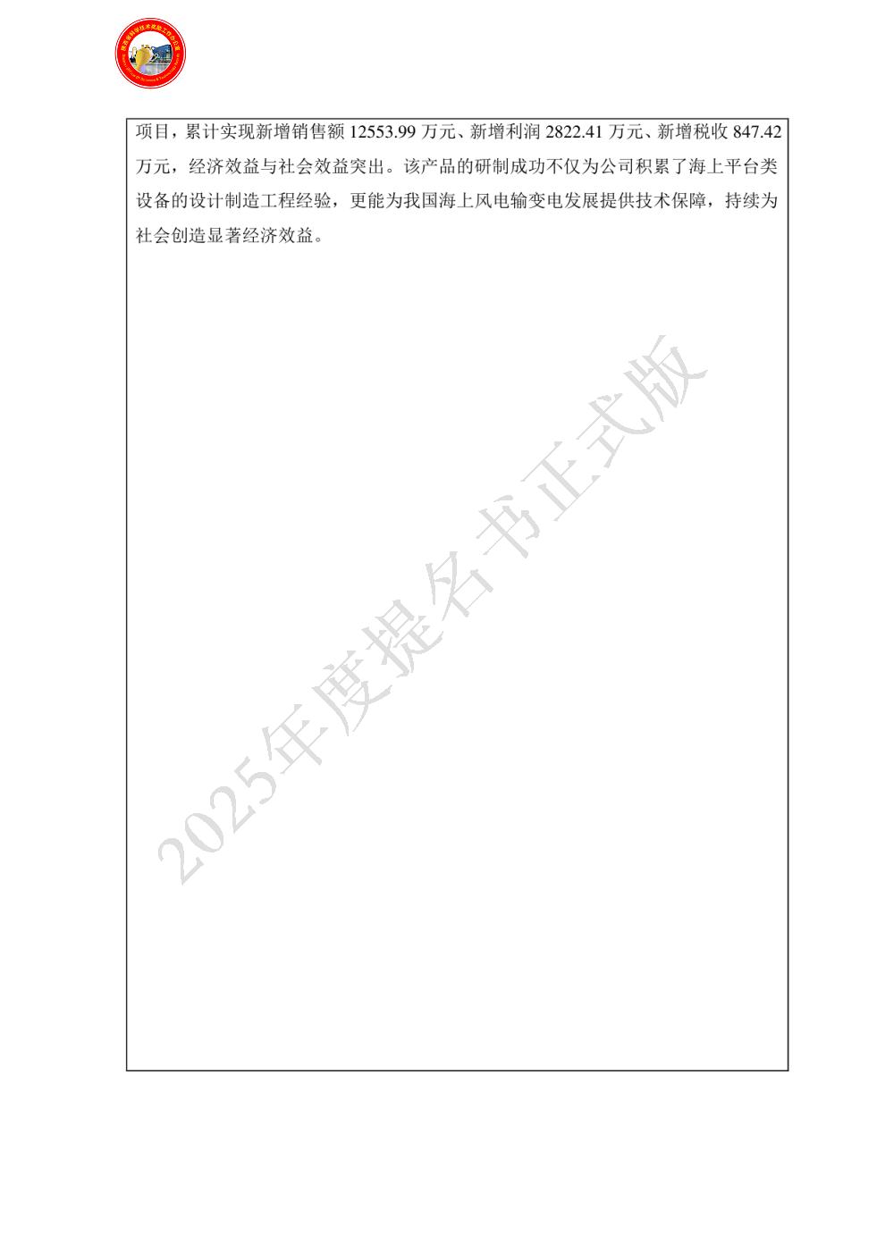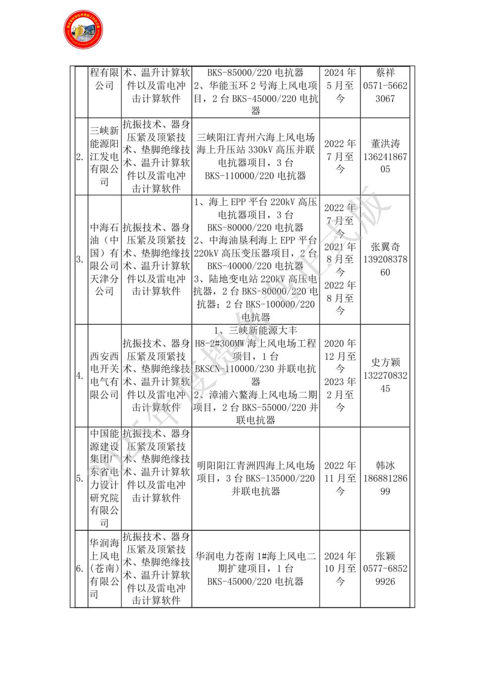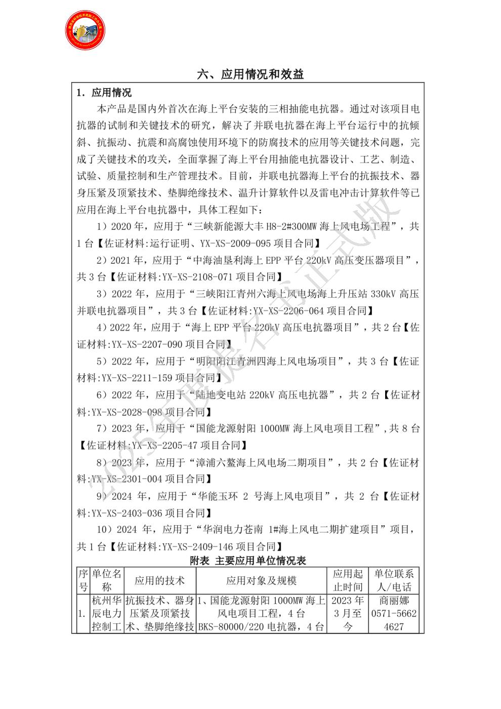 单位贡献:本产品根据“三峡新能源江苏大丰H8-2#海上风电项目”的要求进行设计、制造、生产、试验,其性能参数完全满足技术协议的规定。