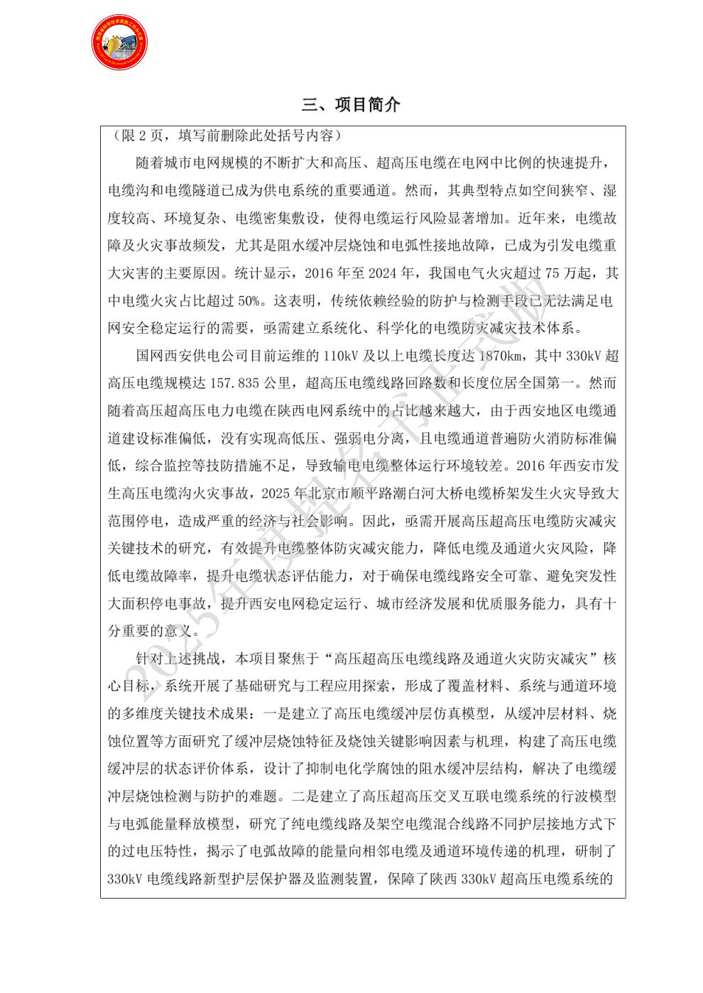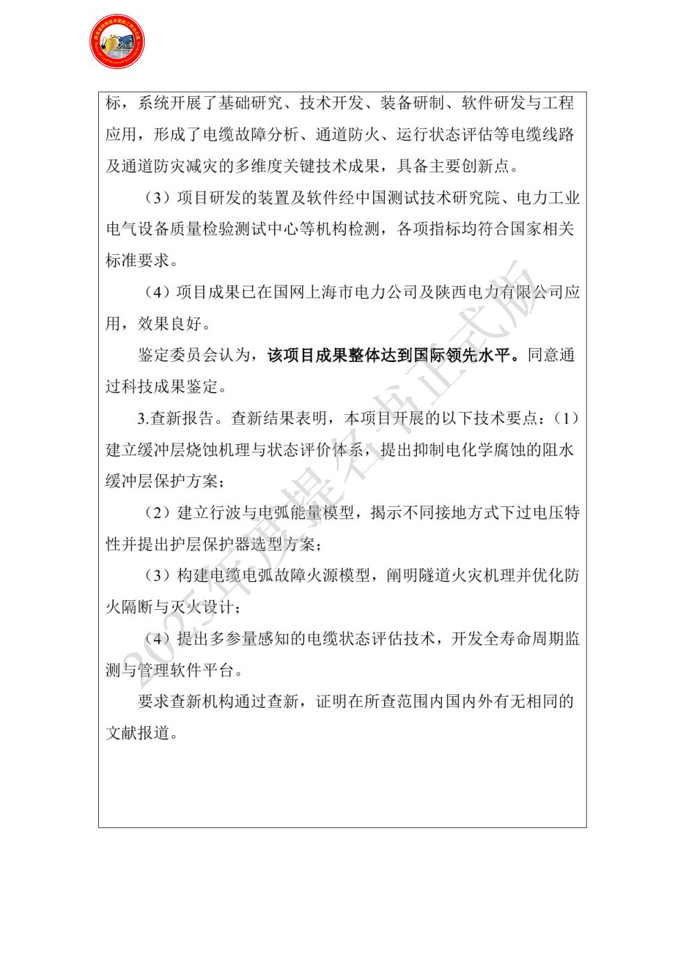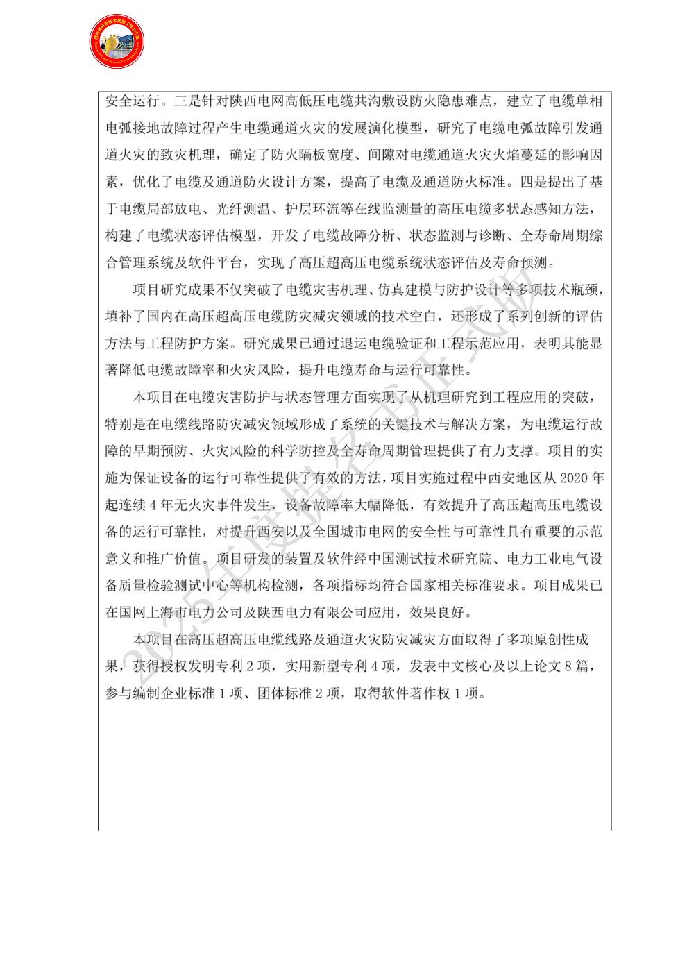 单位贡献:项目主要承担单位,项目主要执行单位,参与了西安电网电缆线路及通道防火综合治理研究,保障电力电缆安全运行的状态检测新技术研究及应用关键技术研究工作。