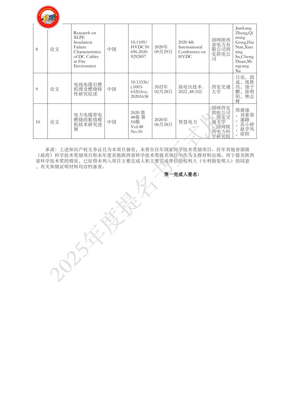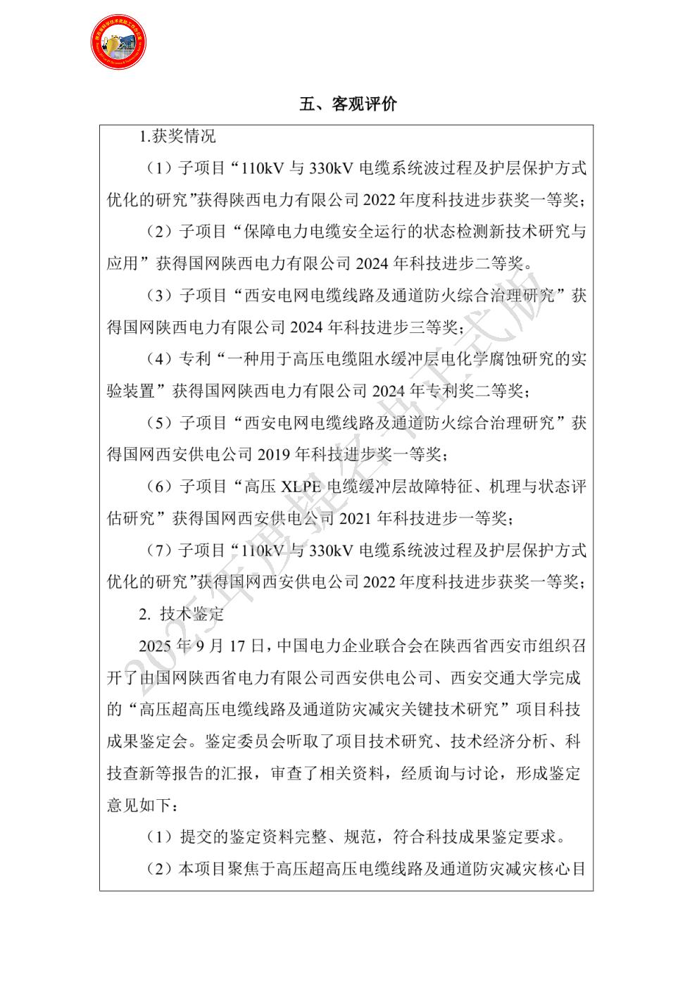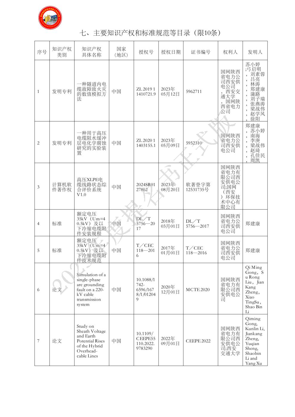 单位贡献:项目主要承担单位,项目主要执行单位,参与了西安电网电缆线路及通道防火综合治理研究,保障电力电缆安全运行的状态检测新技术研究及应用关键技术研究工作。
