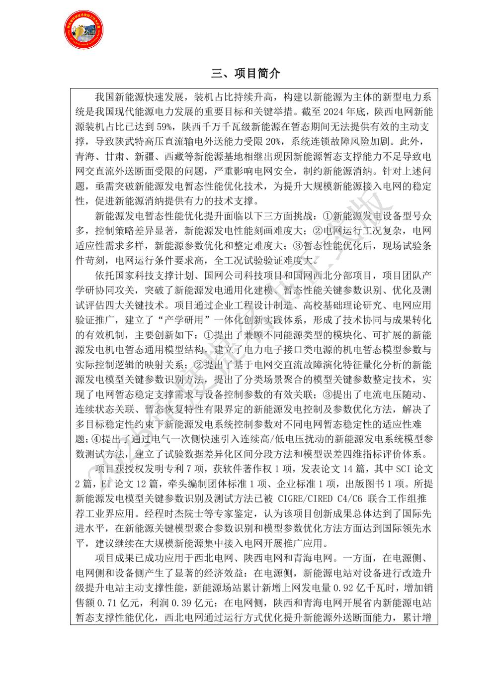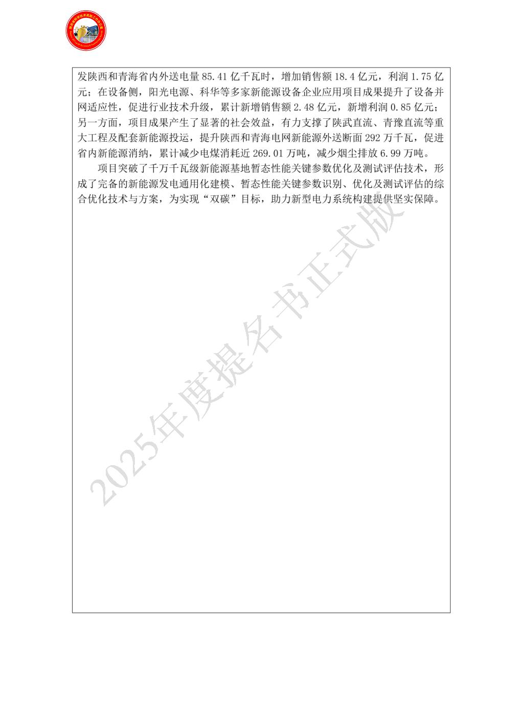 | 提名单位: | 国网陕西省电力有限公司 |