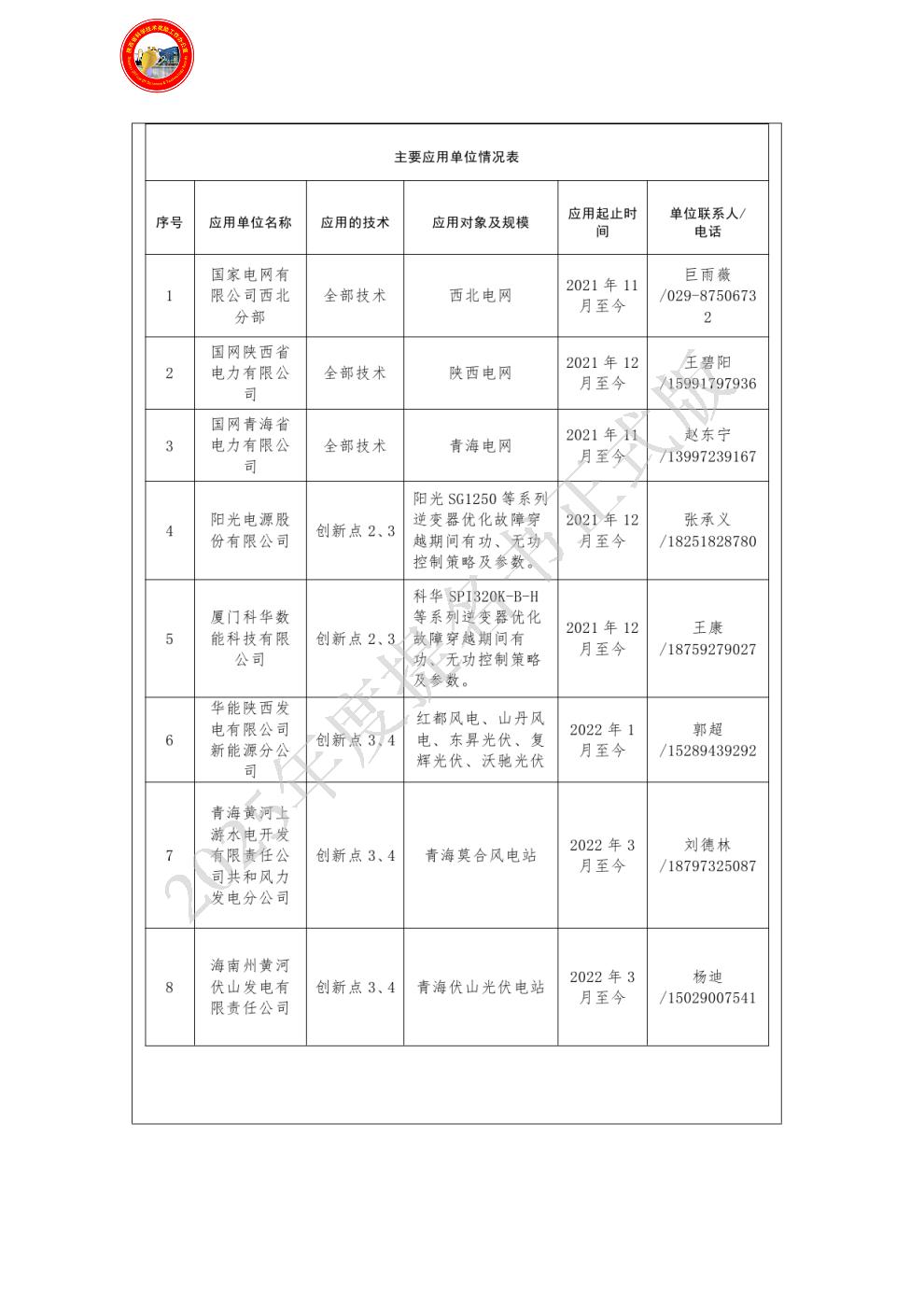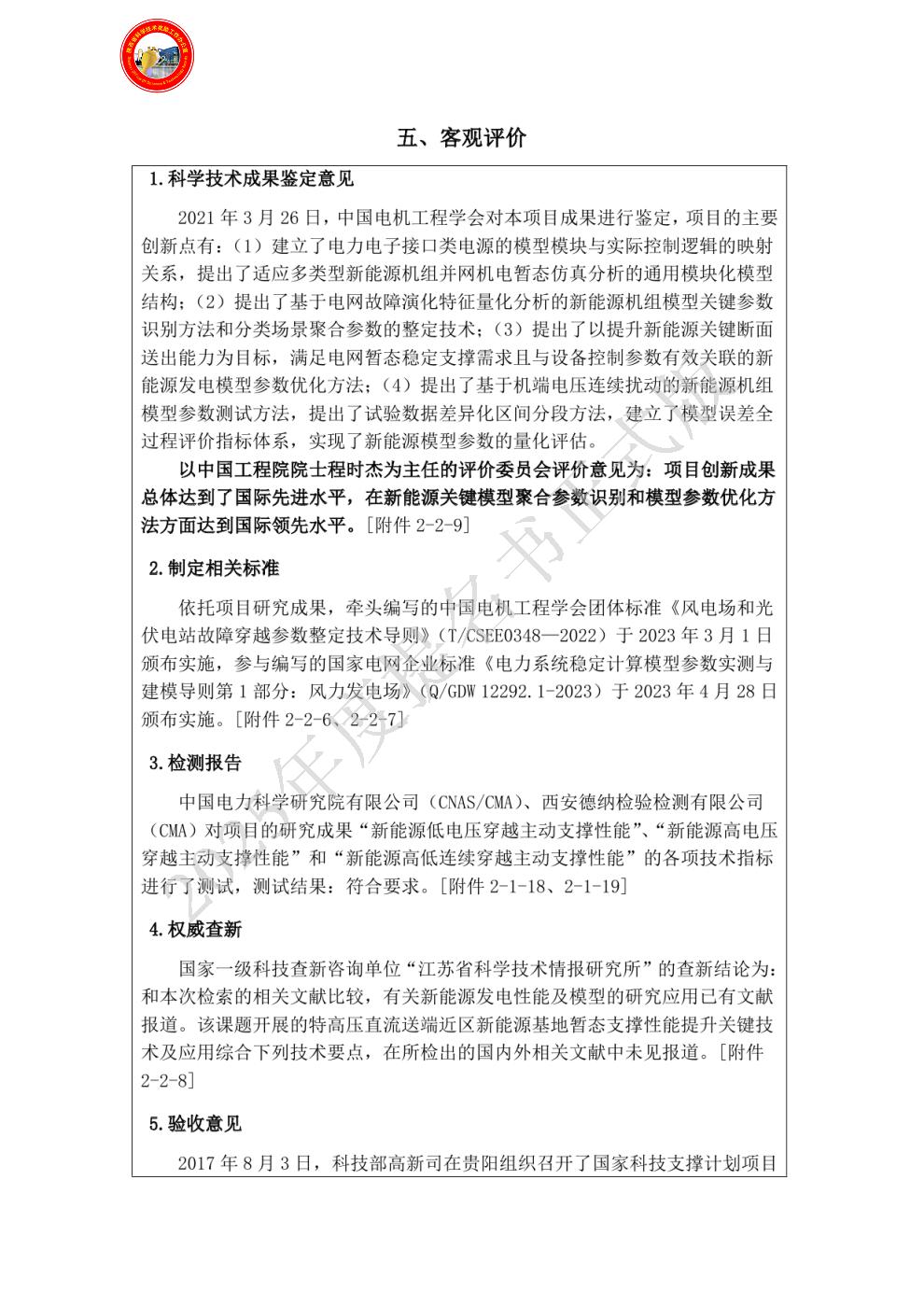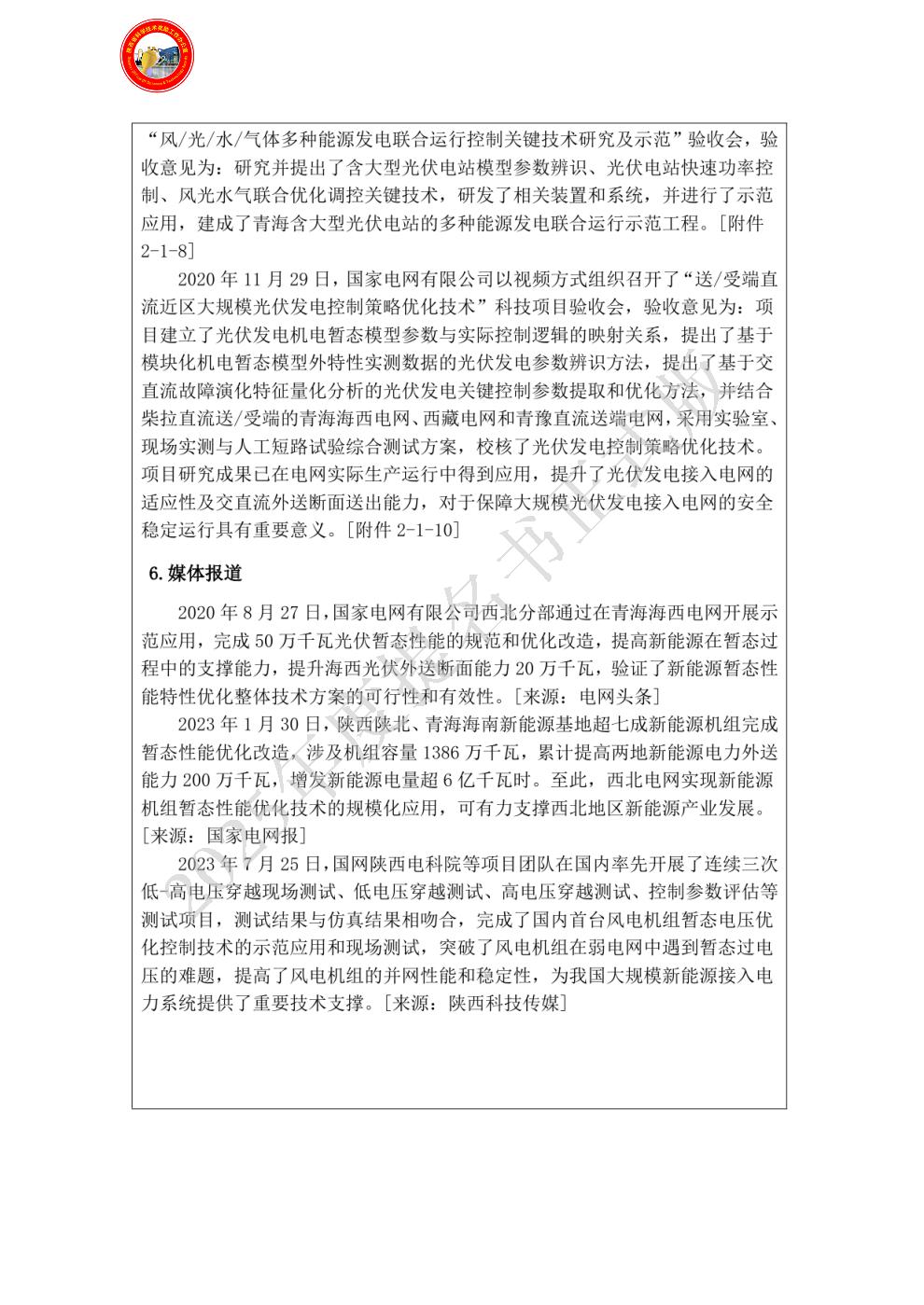 单位贡献:项目主要完成单位,主要负责新能源主动支撑性能提升技术攻关: