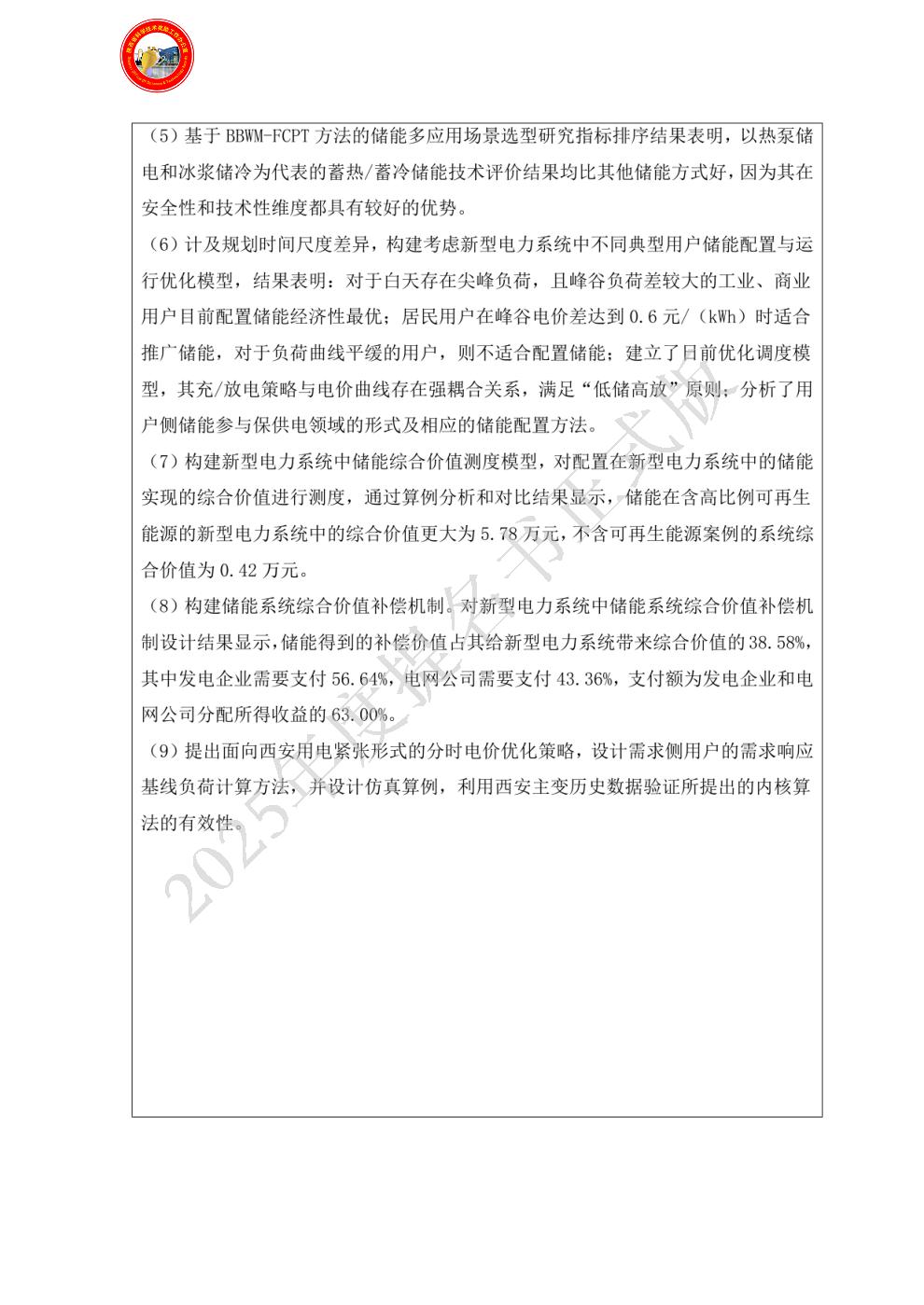 创造性贡献:构建储能系统综合价值补偿机制。对新型电力系统中储能系统综合价值补偿机制设计结果显示,储能得到的补偿价值占其给新型电力系统带来综合价值的38.58%,其中发电企业需要支付56.64%,电网公司需要支付43.36%,支付额为发电企业和电网公司分配所得收益的63.00%。 曾获国家科技奖励情况: - 姓名:任正某